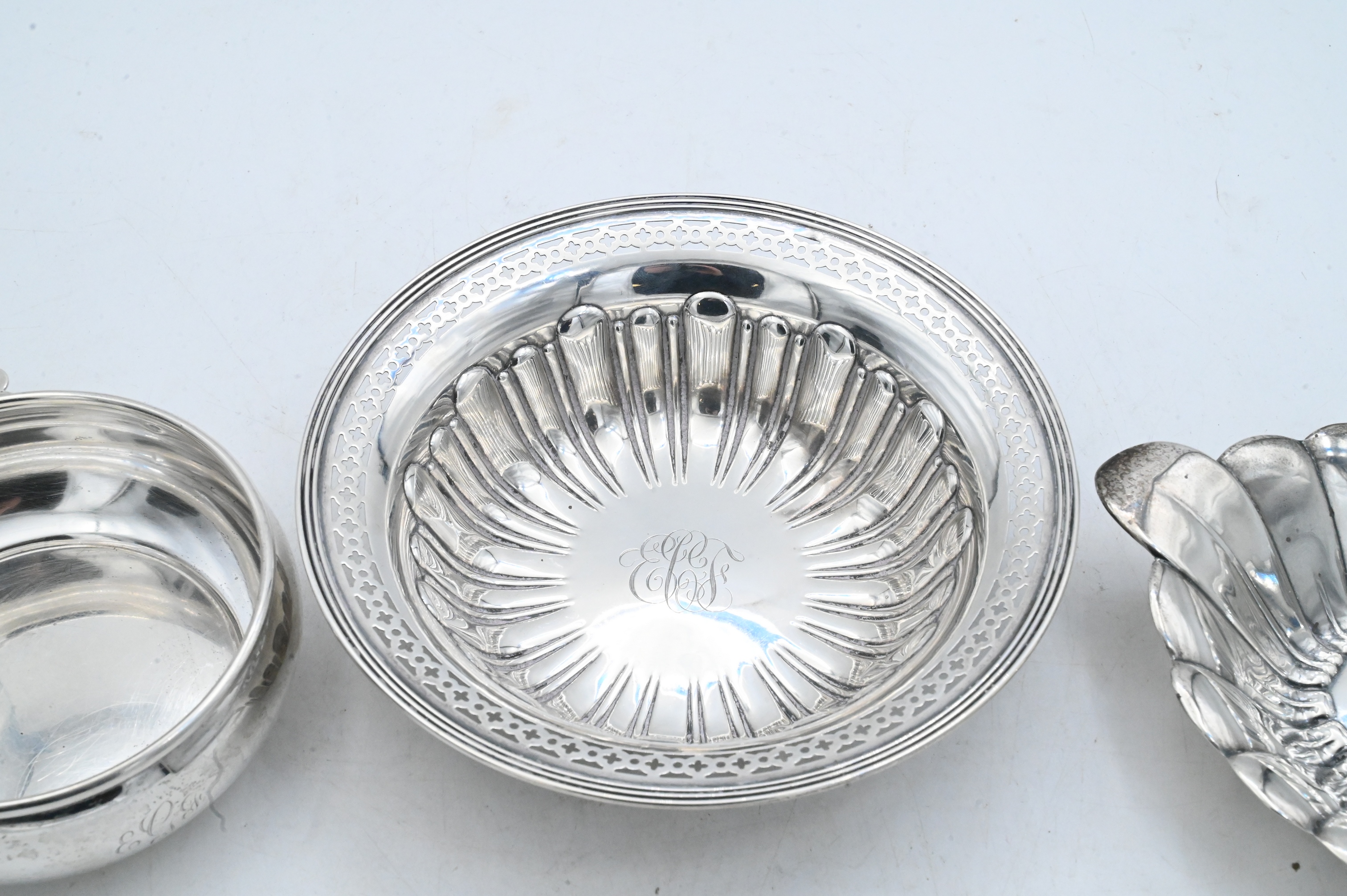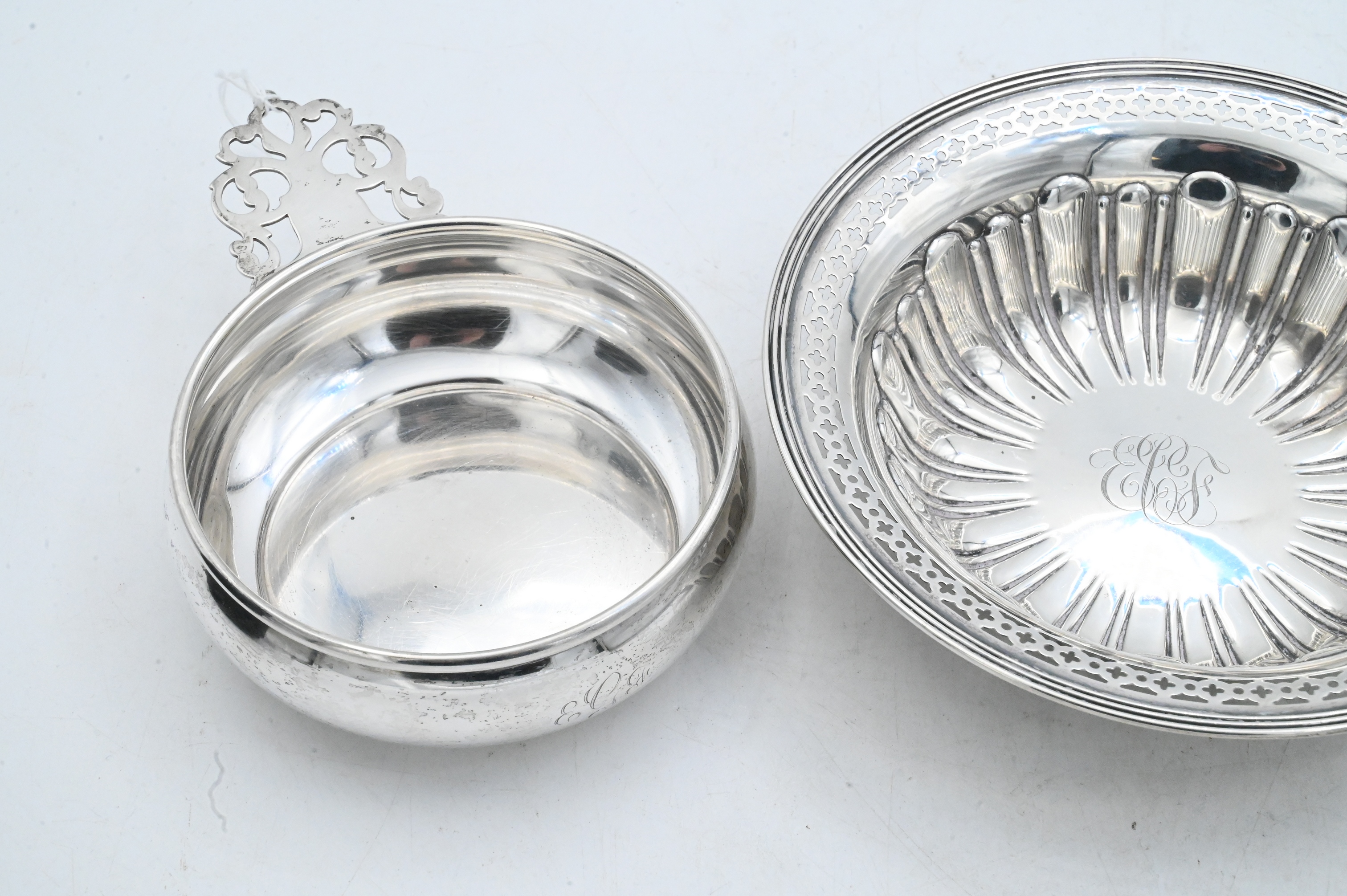 to include Wallace porringer having reticulated handle, Galt & Brothers reticulated bowl, along with a shaped dish, all monogrammed