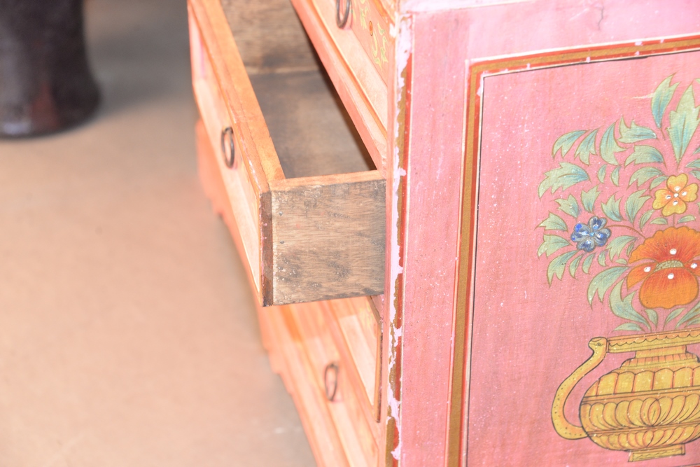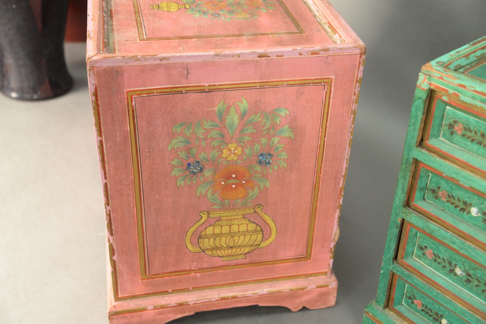Two Diminutive Paint Decorated Chests, each having eight drawers, height 15 1/2 inches, width 23 inches, depth 12 1/4 inches.