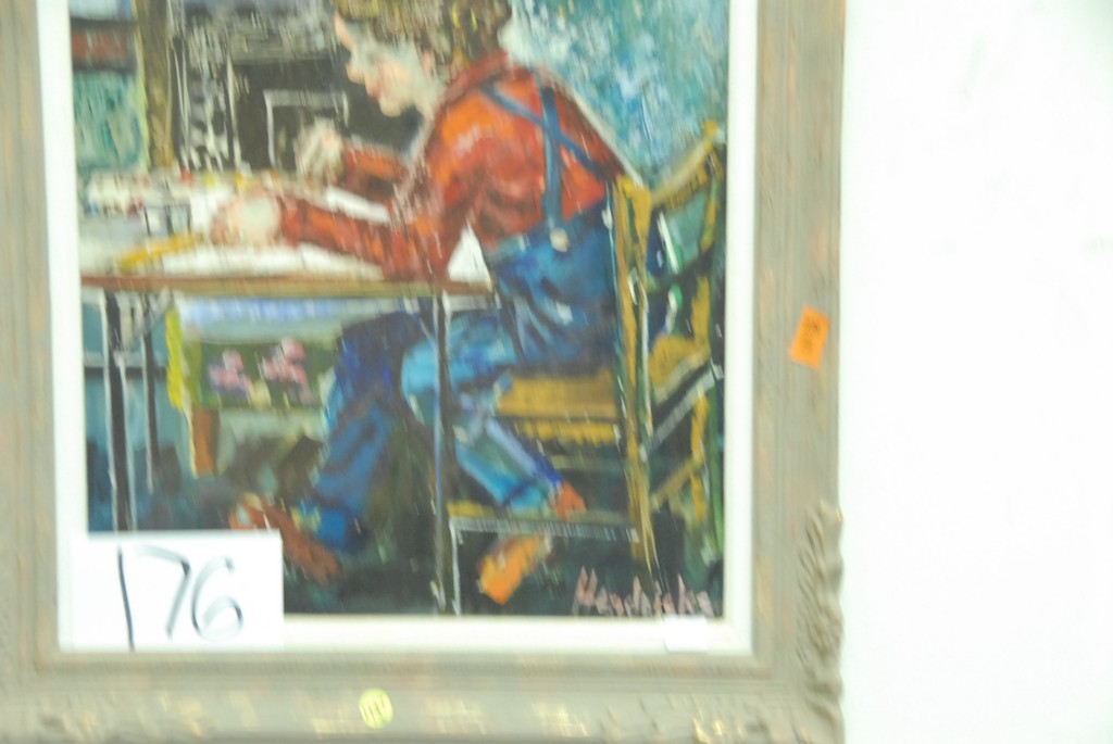 Two paintings Bernard Lennon CT 1914-1992 oil on masonite bust of a girl and oil on board painting of a boy at a school desk signed Hendricks.