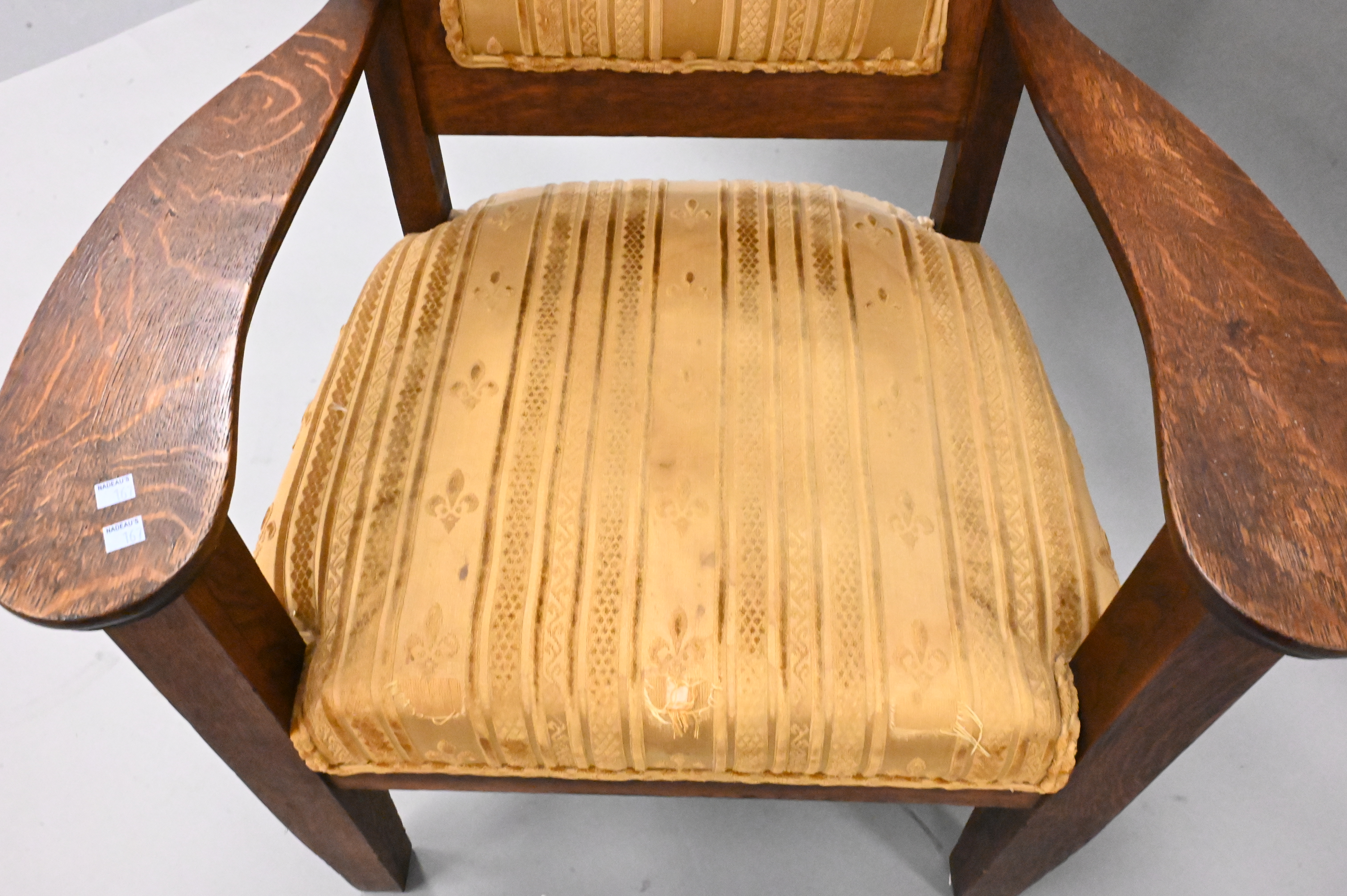 Lot 239A: Carved Oak “Throne” Upholstered Chair