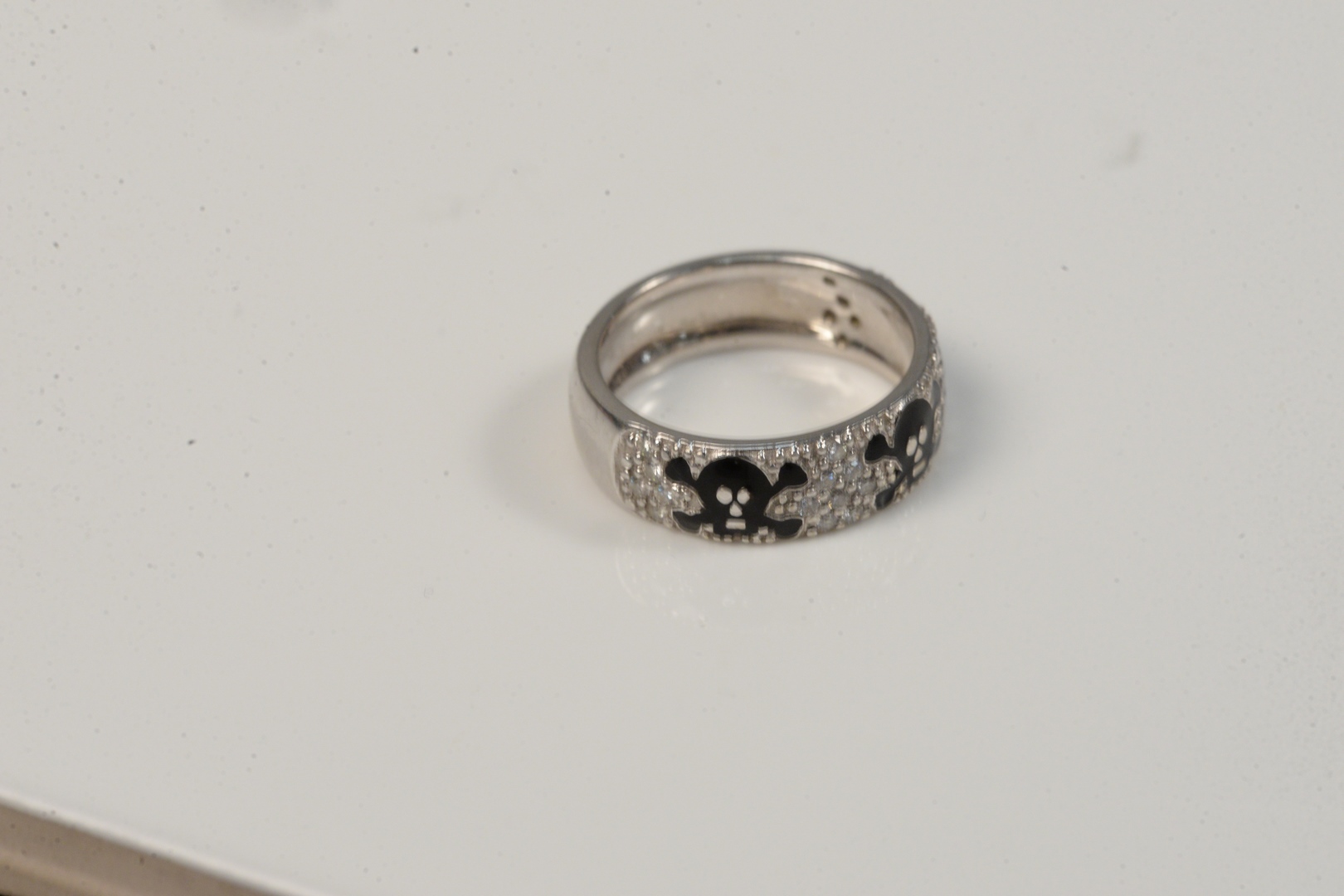 with skull and crossbone enamel and pave diamonds