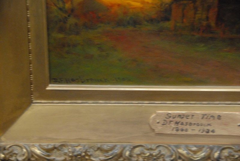 Lot 24: Dubois Fenelon Hasbrouck 1860-1934 oil on board Afterglow Along a Path signed lower left D. F. Hasbrouck 1908, 10 x 12.
