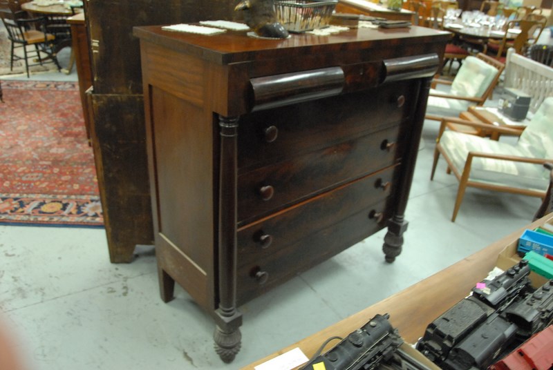 Lot 24: Empire mahogany chest, three over four drawers with pineapple feet, ht. 49in. wd. 48in. dp. 20 in.