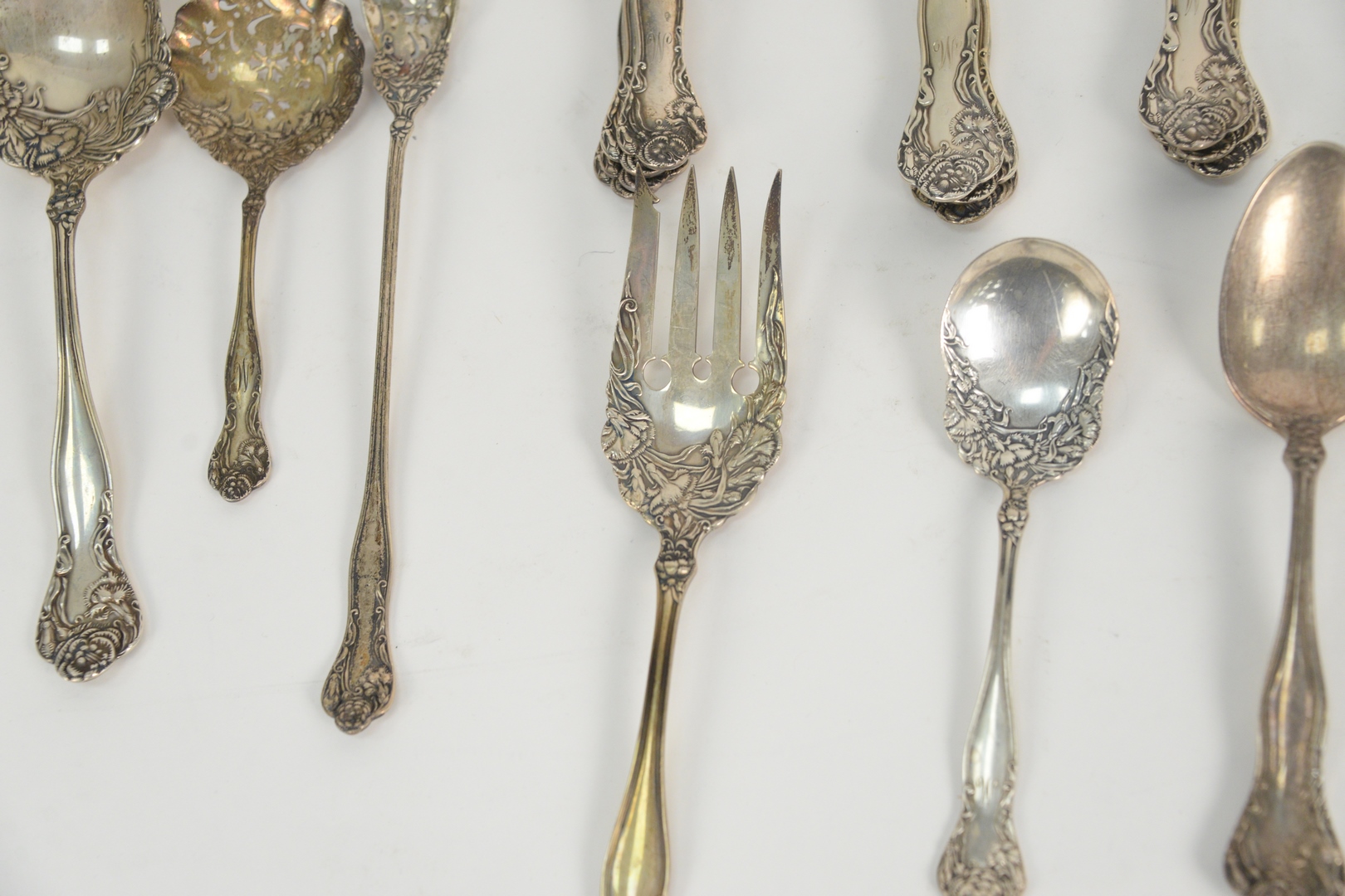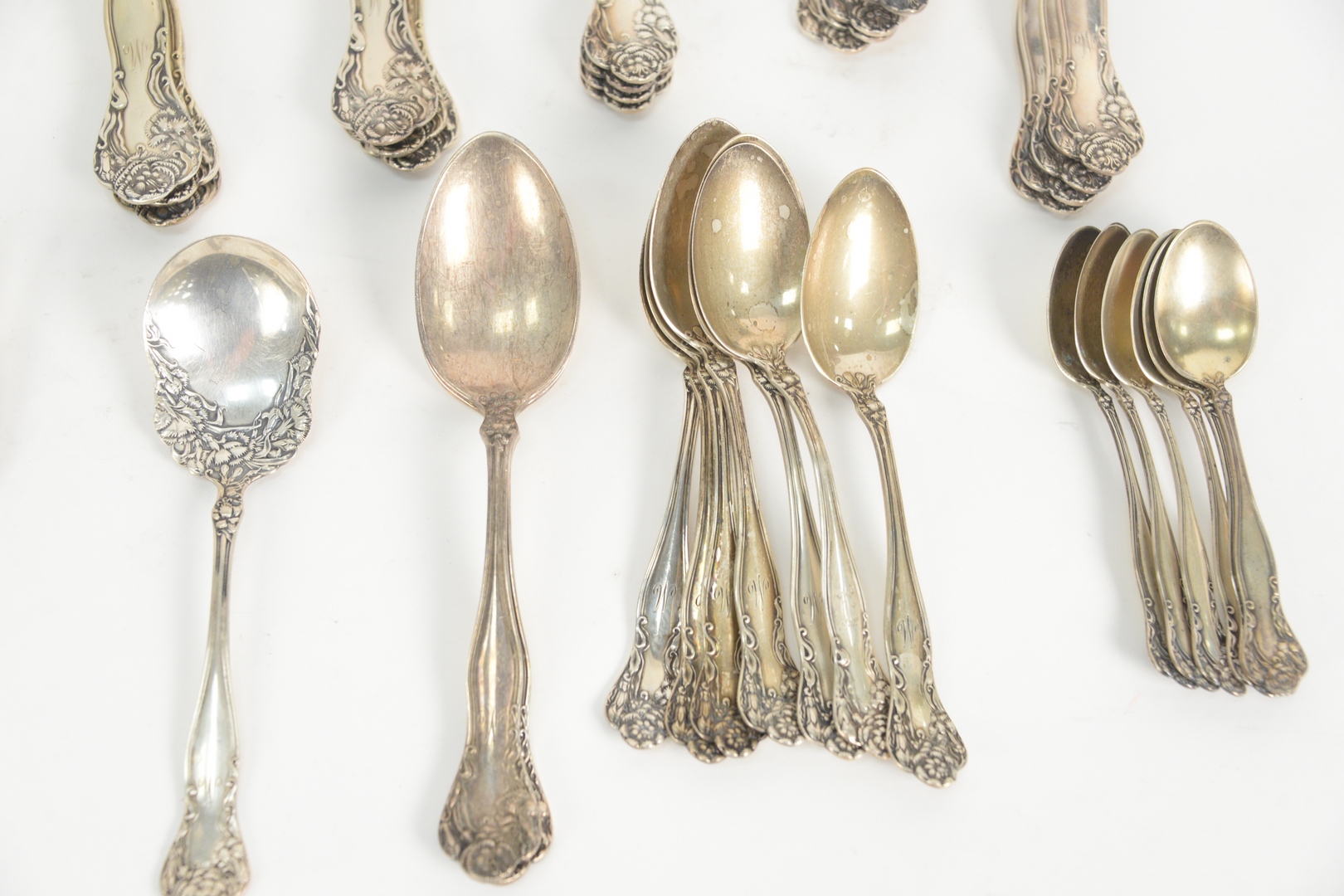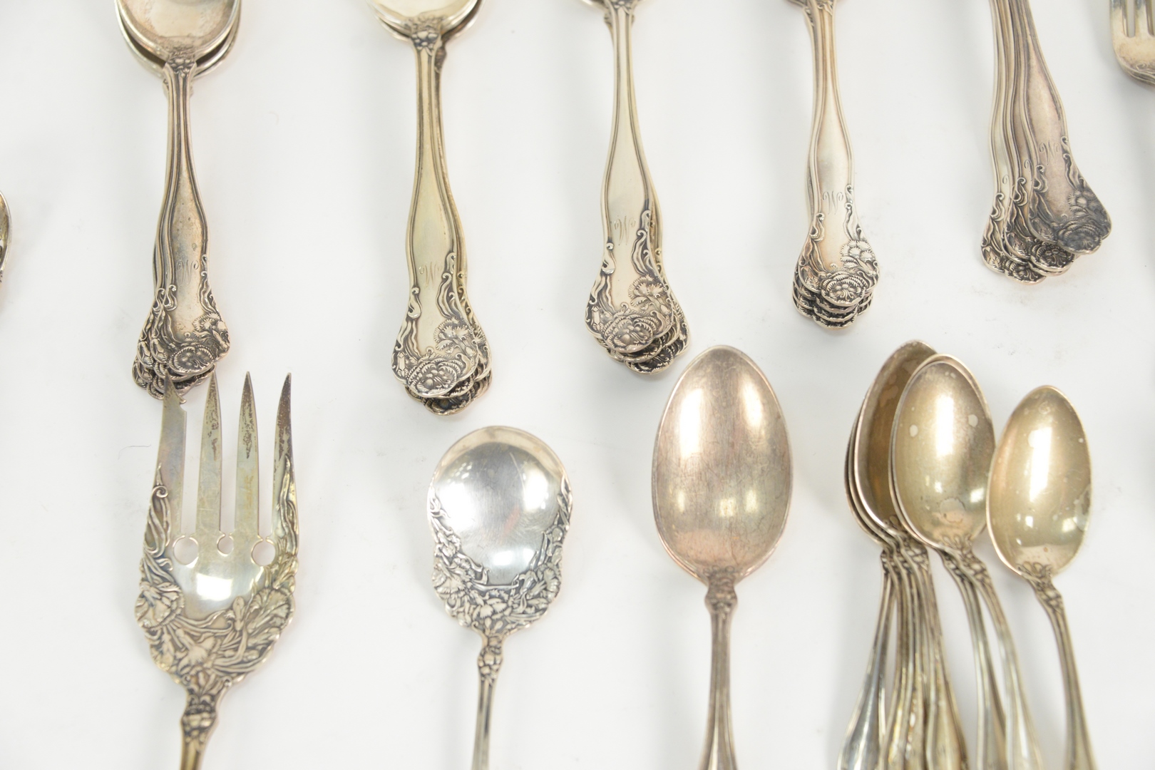 Lot 24: Forty One Piece Sterling Silver Partial Flatware Set, 53 t.oz. Provenance: From a Newport, Rhode Island historic home, in the same family since 1761.