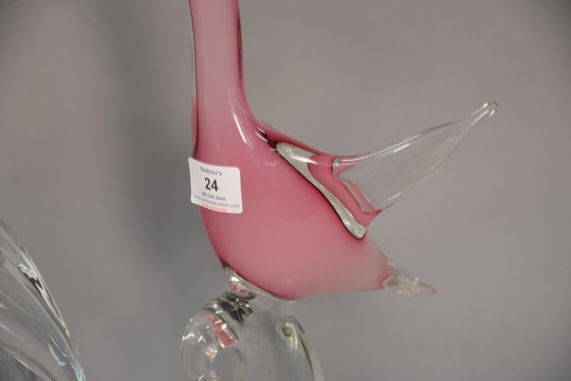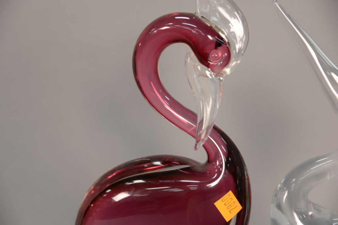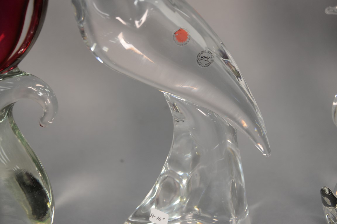Lot 24: Group of three large Murano art glass birds of paradise and pelican. ht. 16 in. to 17 1/2 in.