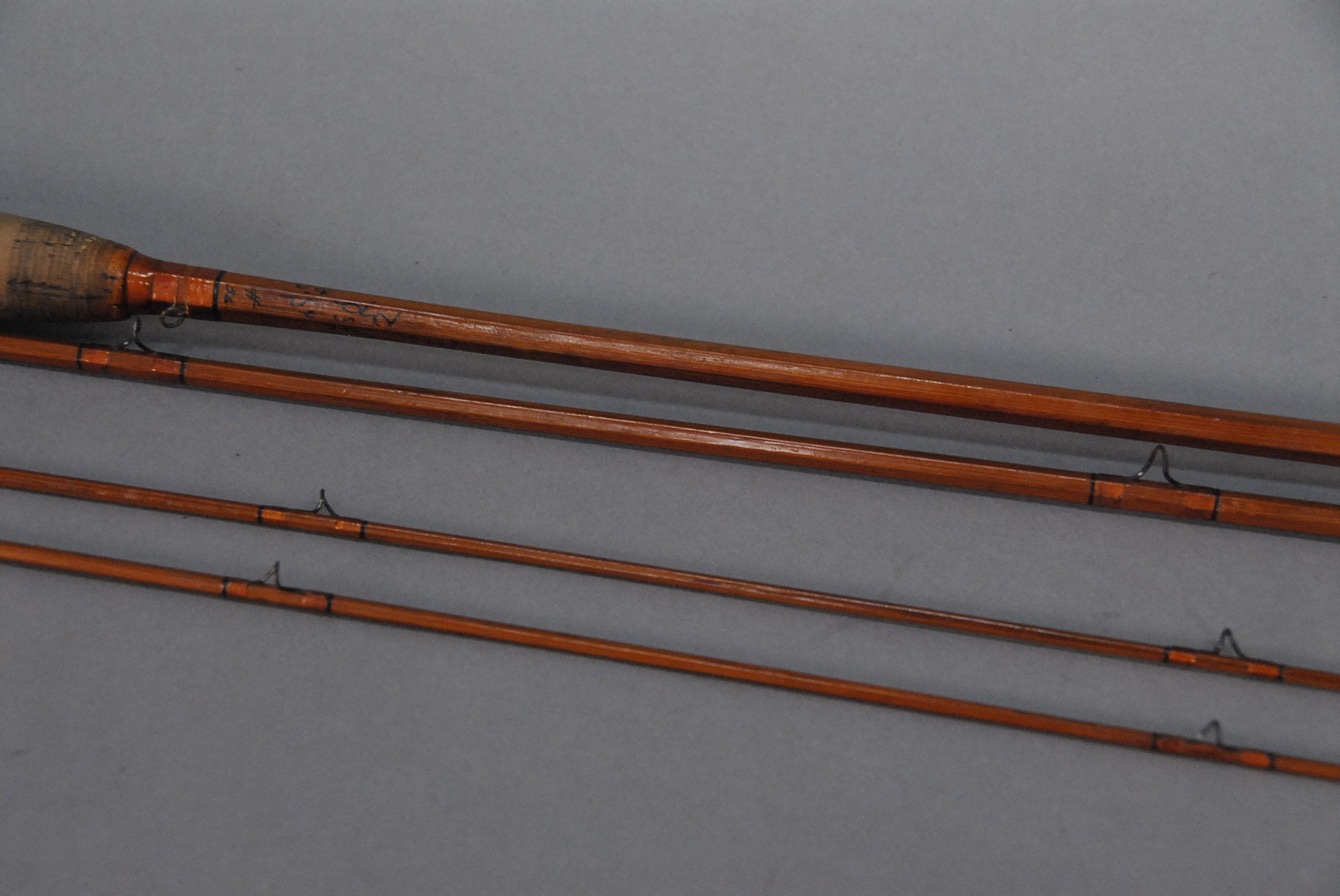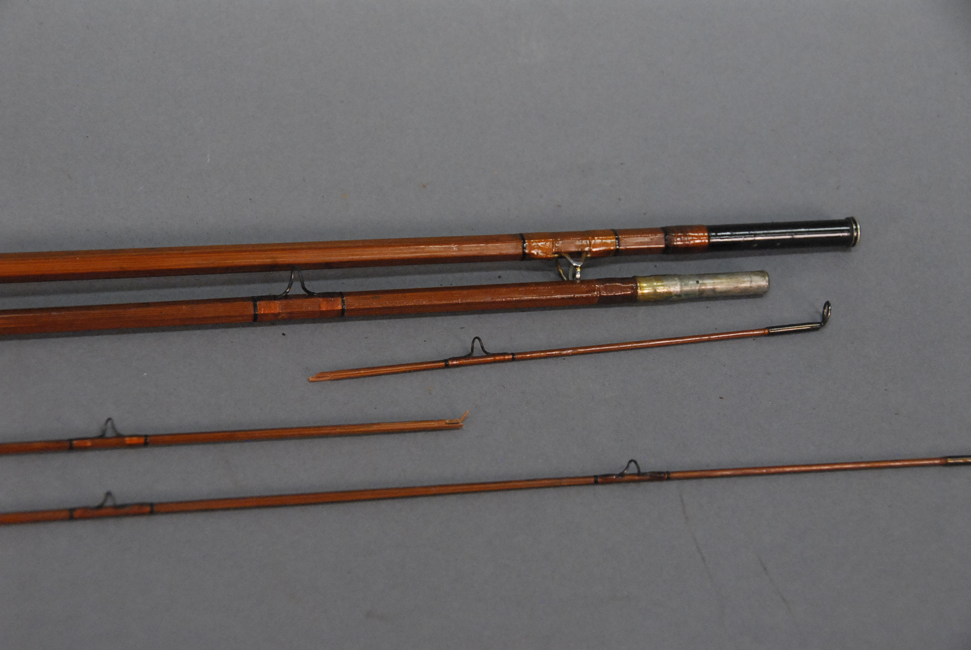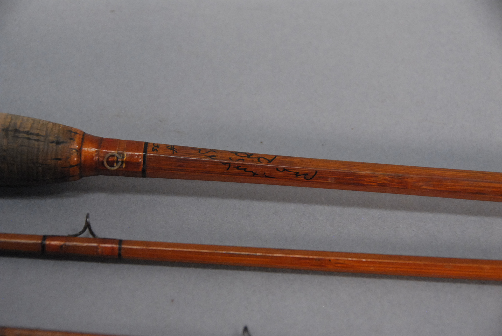 Heddon Deluxe #35 three part bamboo fly rod one tip broken.