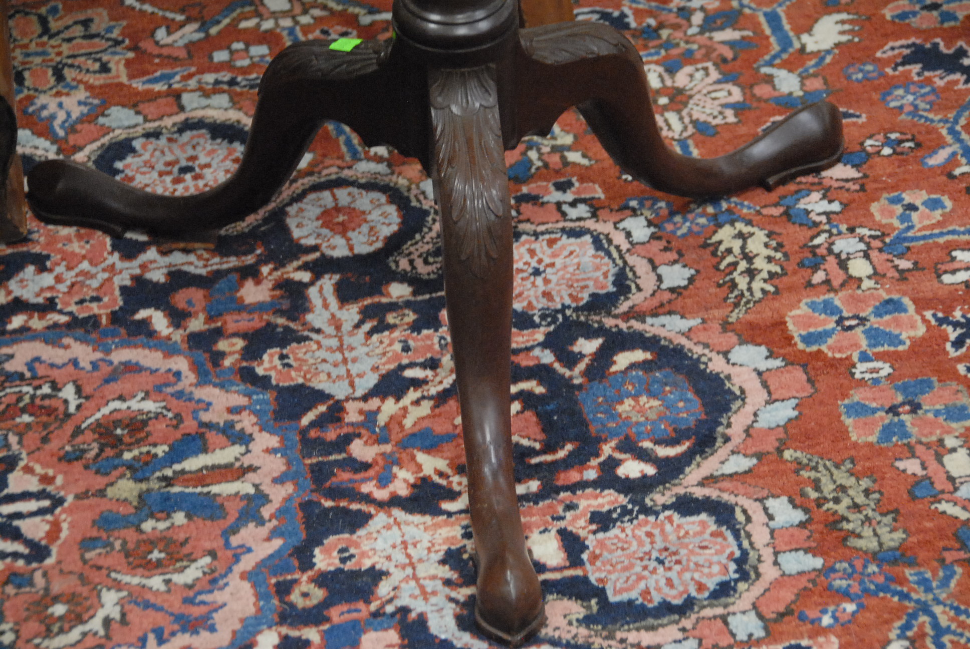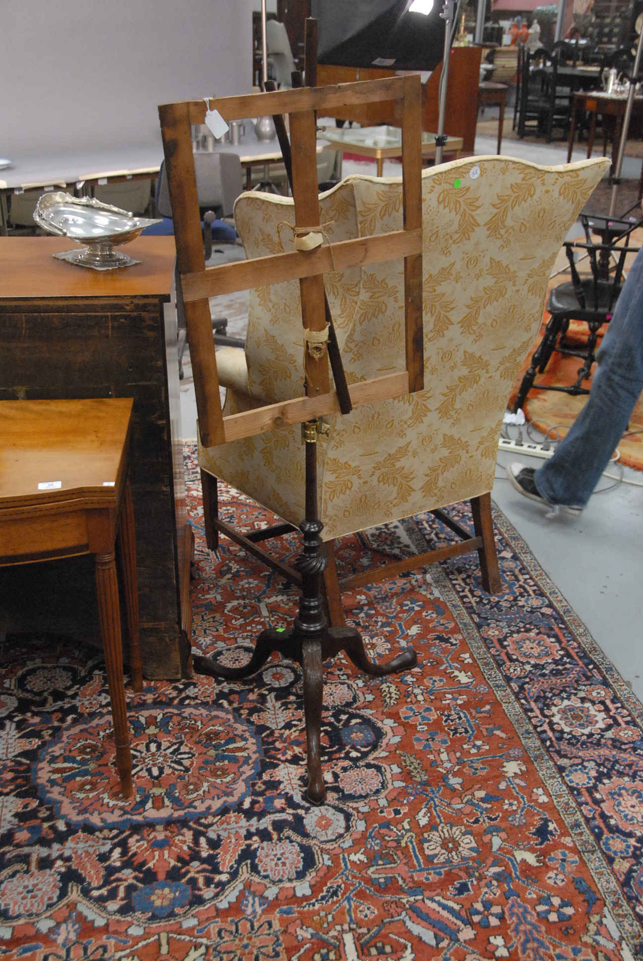 Lot 24: Mahogany pole screen with rectangular frame for panel on base with turned shaft with carved knee on tripod base. ht. 58 1/2 in. Provenance: Property from a Private Collection Sold for the Benefit of the Virginia Historical Society.