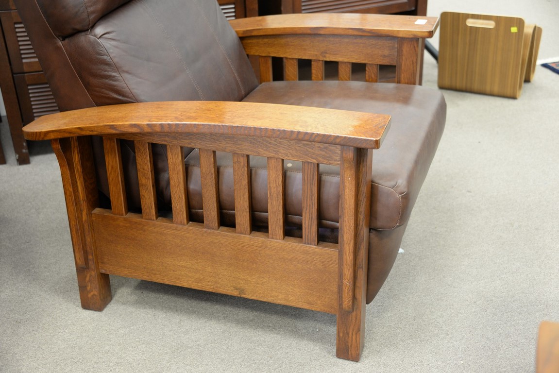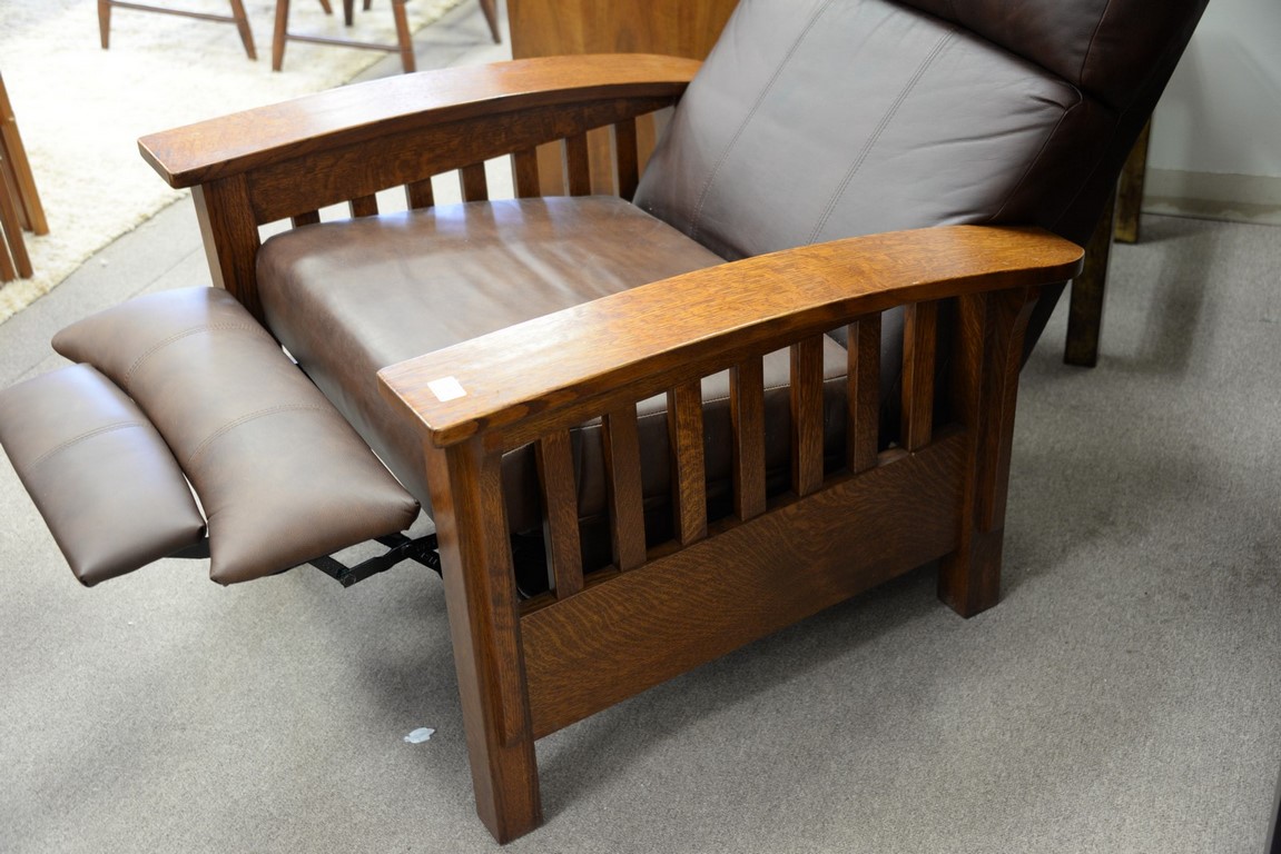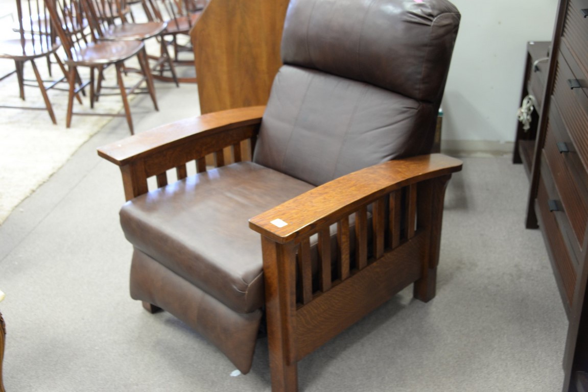 Mission oak style reclining chair. wd. 33 1/4 in.