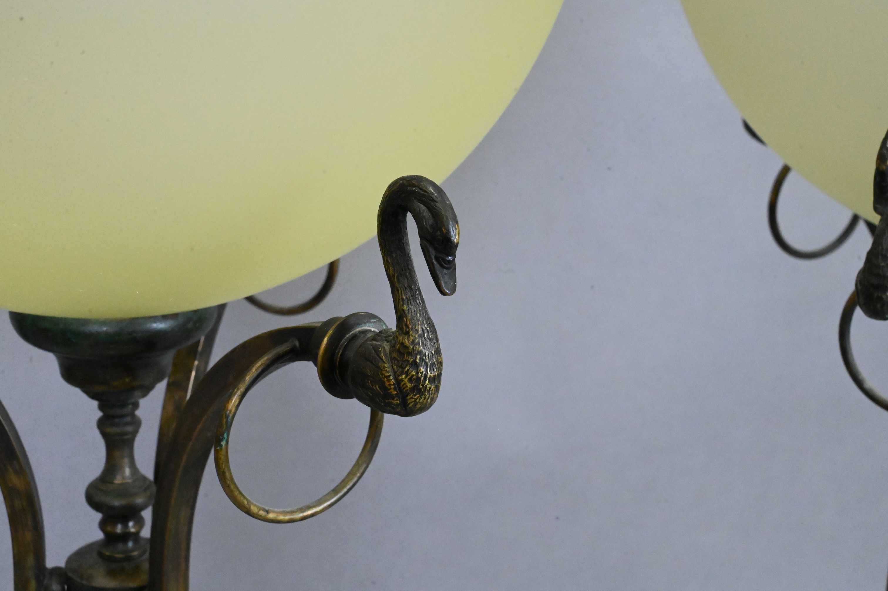 having swan motif traveling down to tripartite base ending in claw paw feet