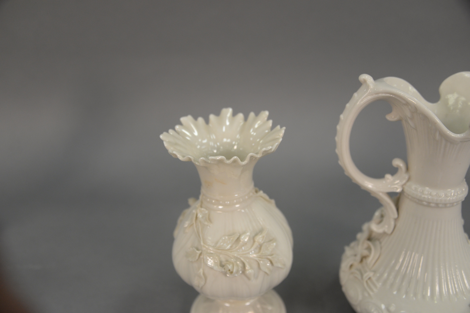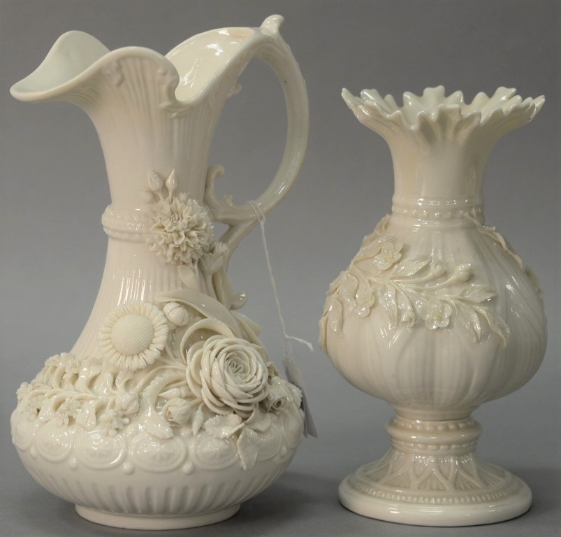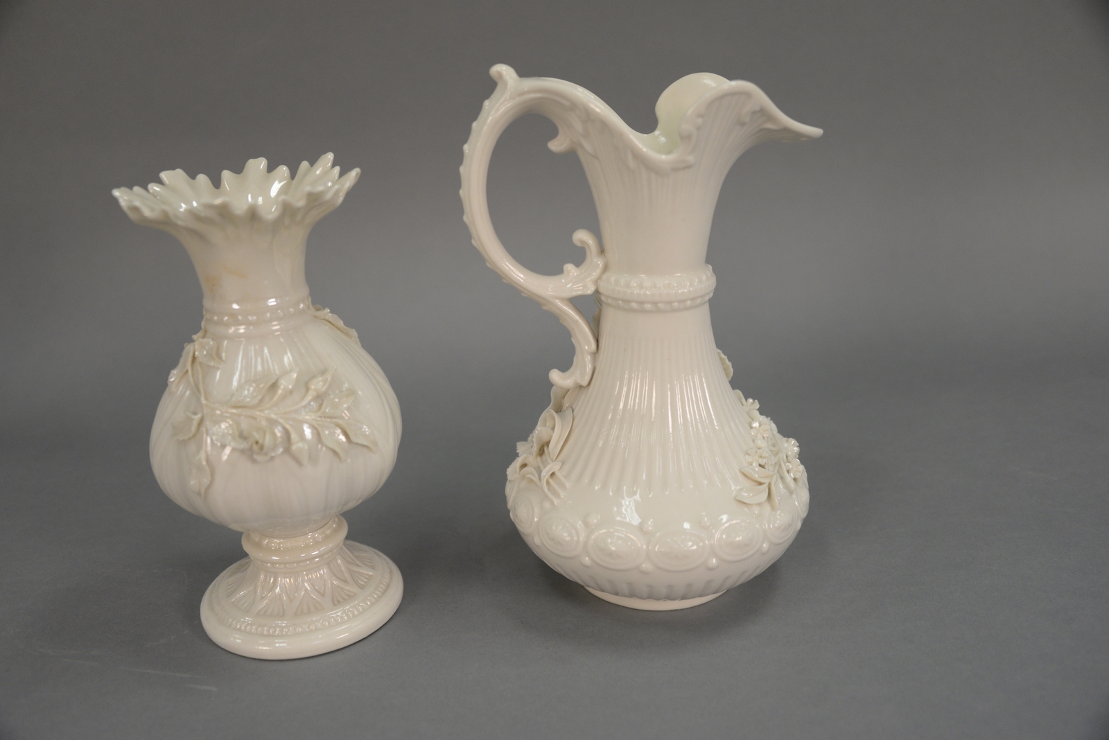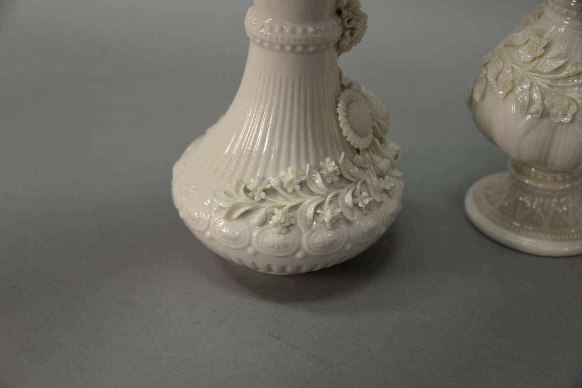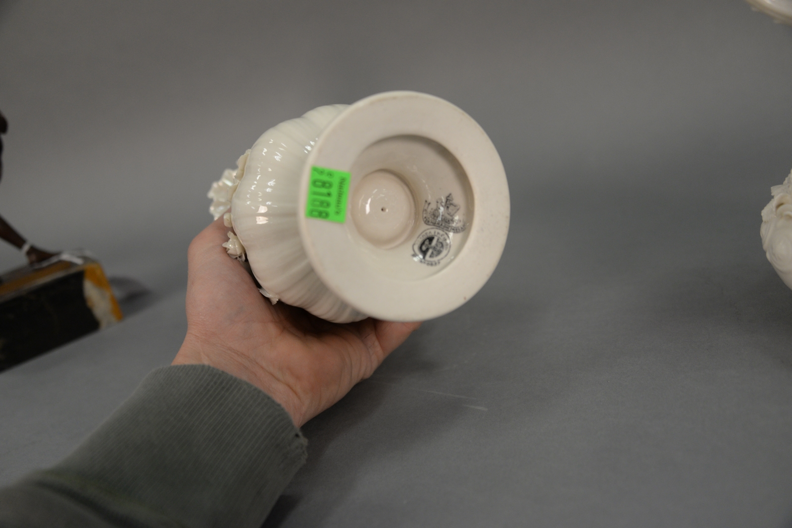 Lot 24: Two Belleek vases including Belleek Aberdeen vase with applied floral decoration and an Irish vase with applied flowers, both with b…