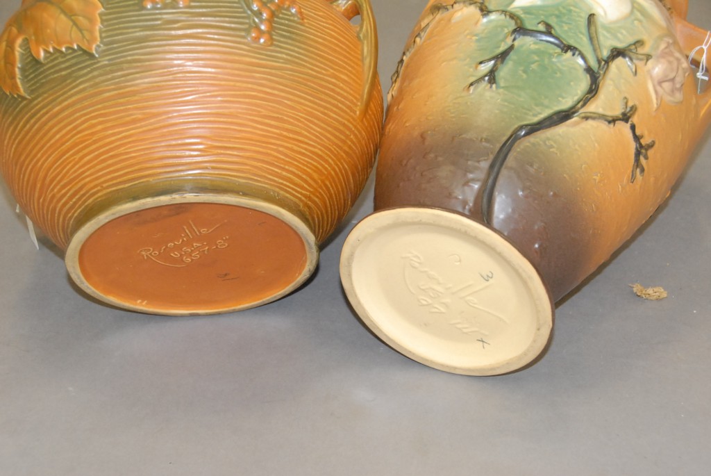 Two large Roseville pieces 2 handled Jardinire #657-8 and vase #97-14.