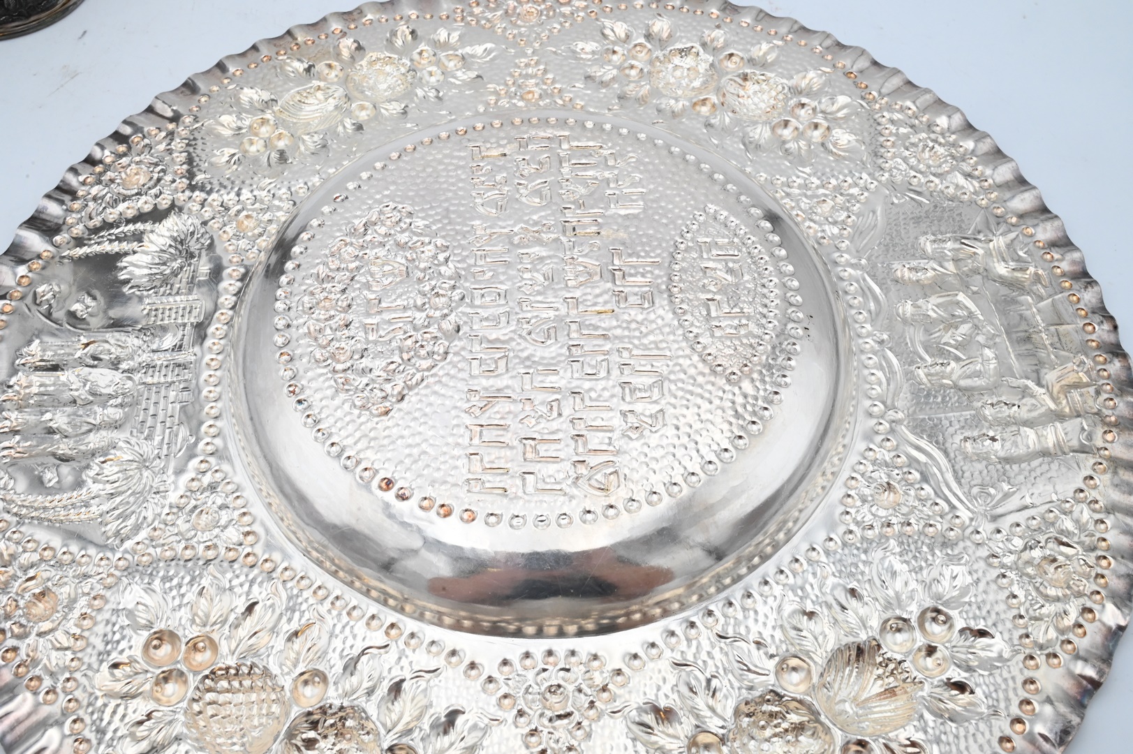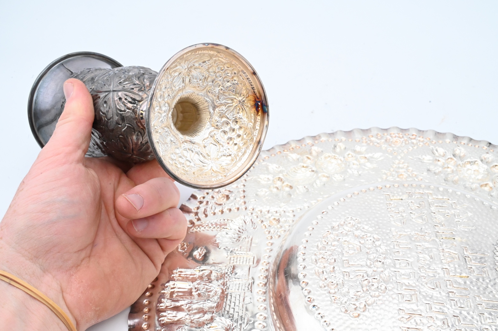 Two Piece Lot, to include Israeli deep plate along with chalice, diameter of plate 13 1/2 inches, 29.6 t.oz.