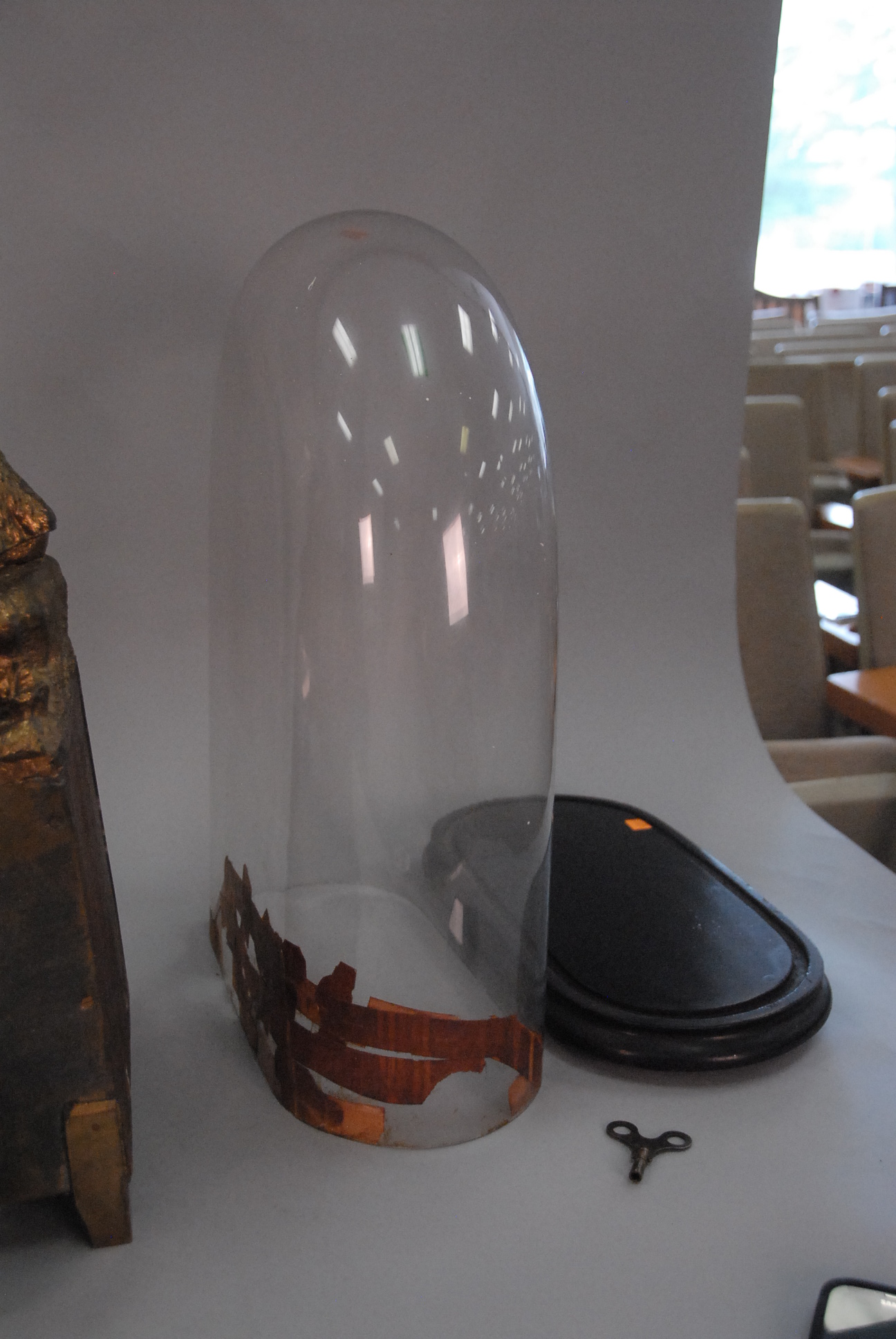 Victorian gilt clock under dome glass dome repaired, clock ht. 19in.