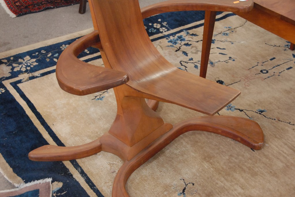 Lot 240: American Studio Craft Movement lounge chair utilizing both solid and laminated bent-ply walnut having a contoured, single piece seat…