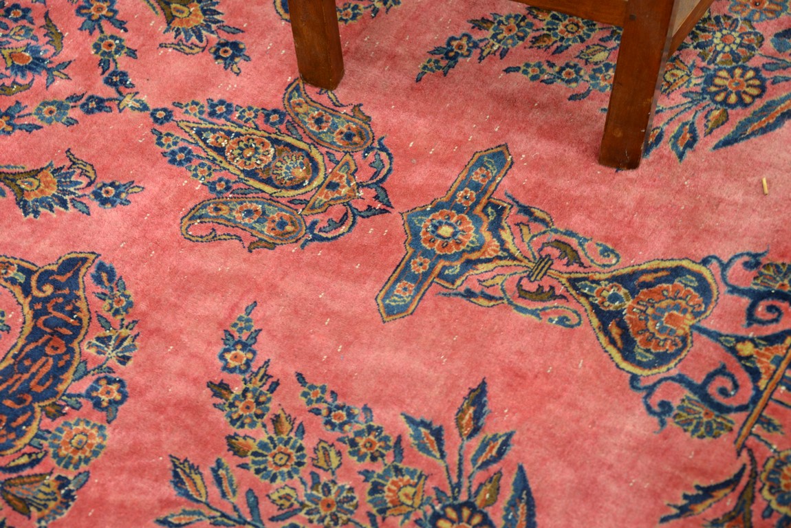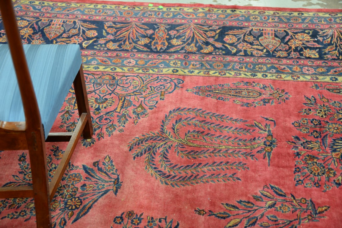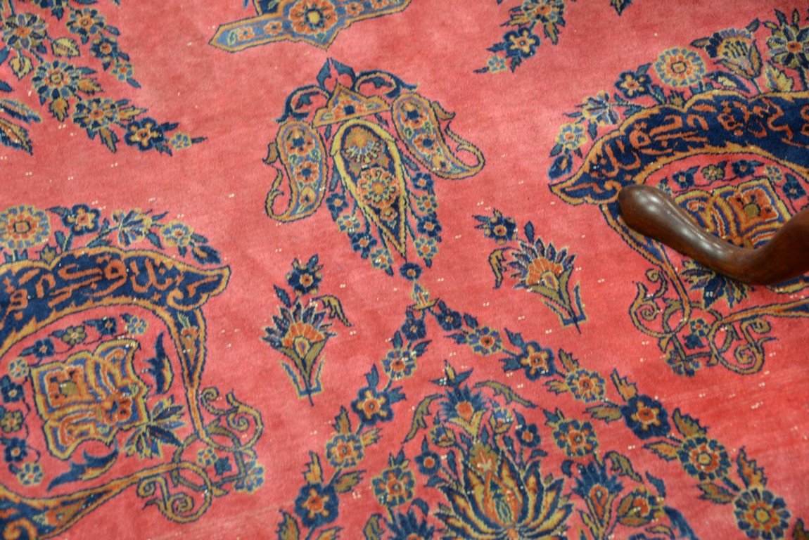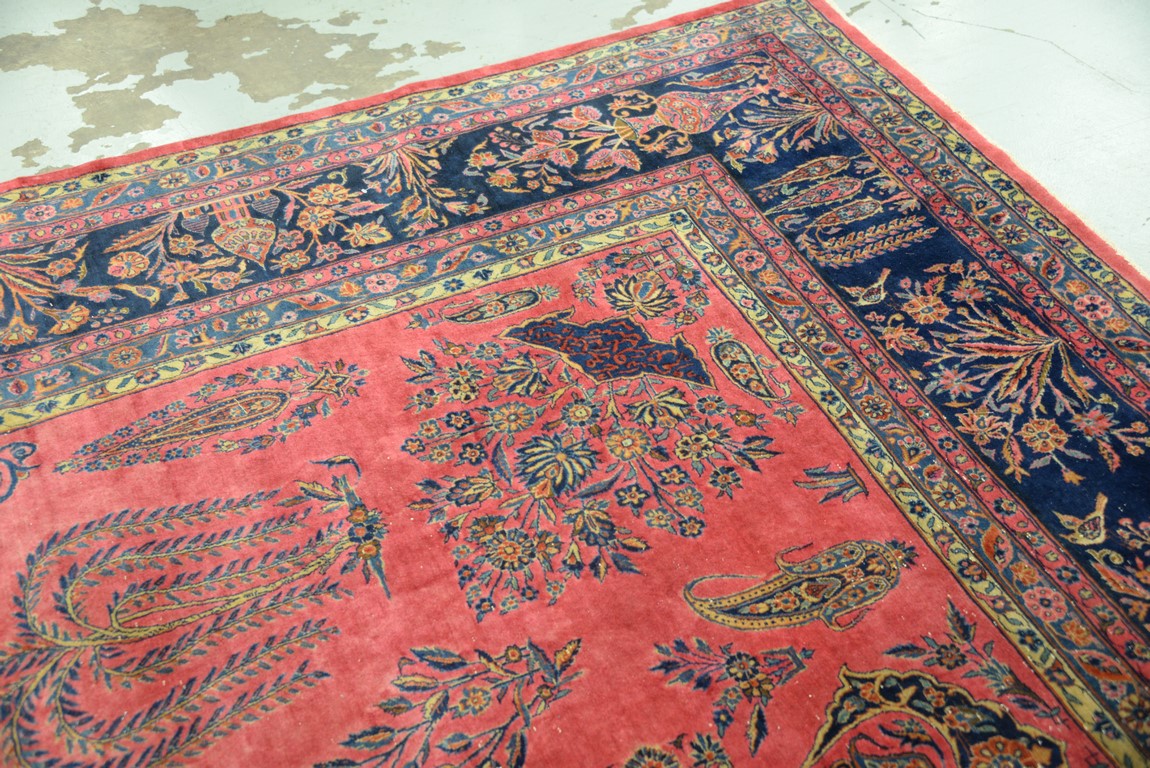 Lot 240: Kashan Oriental carpet with temples, vases, trees, flowers, and birds, signed some wear. 10’4 x 18’10