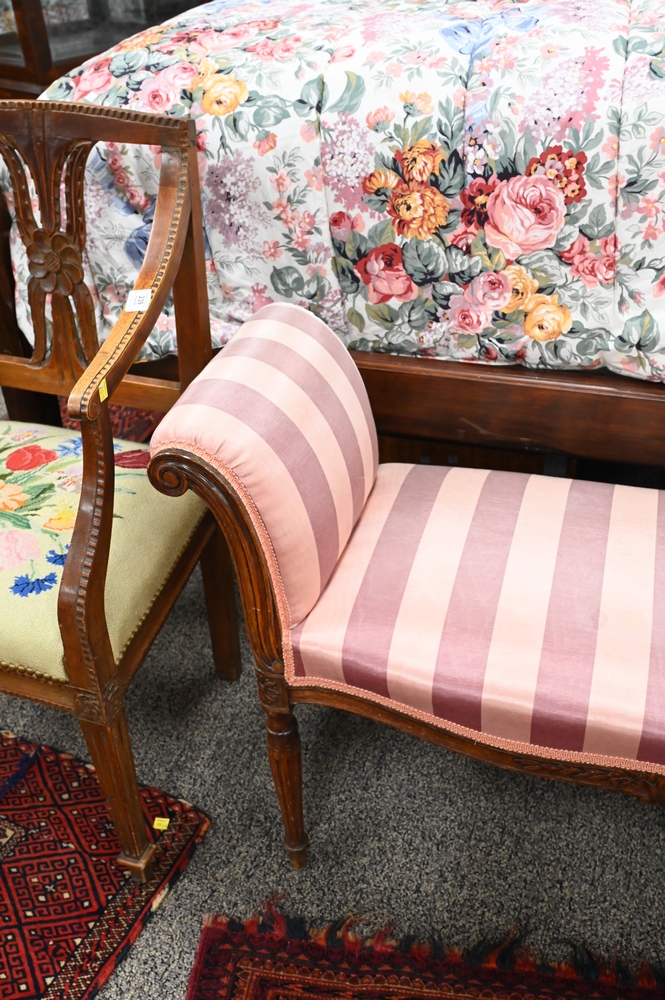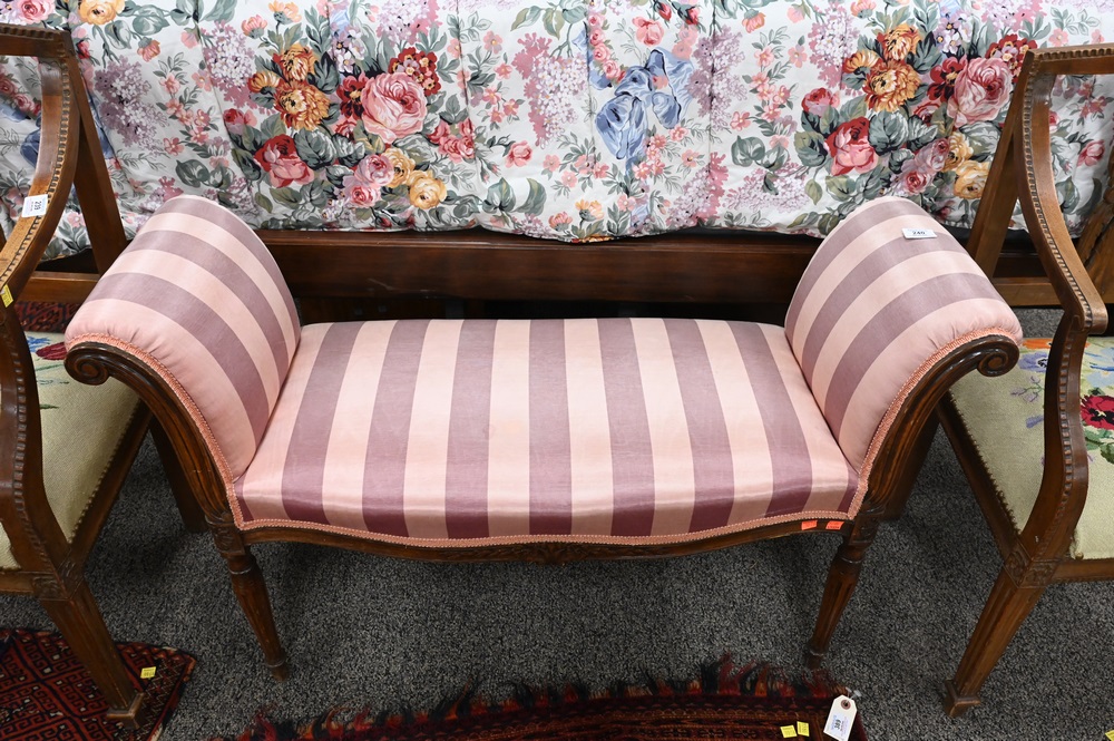 Lot 240: Louis XVI Style Window Bench, attributed to Margolis, height 26 1/4 inches, length 42 inches.