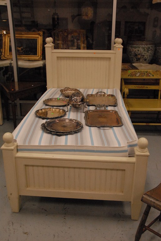 Lot 240: Pair of cottage style painted twin bedsteads.