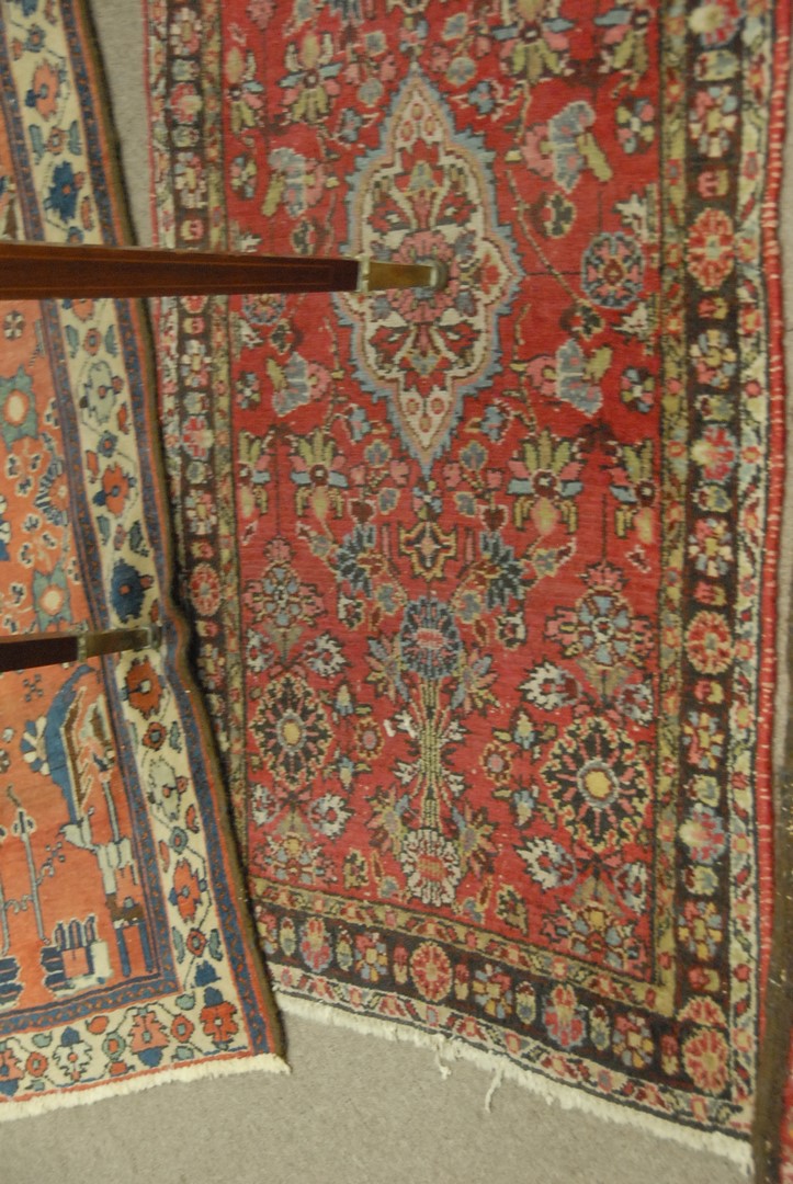 Three Oriental throw rugs. 2’4 x 4′, 2’7 x 4′, 2’7 x 4′