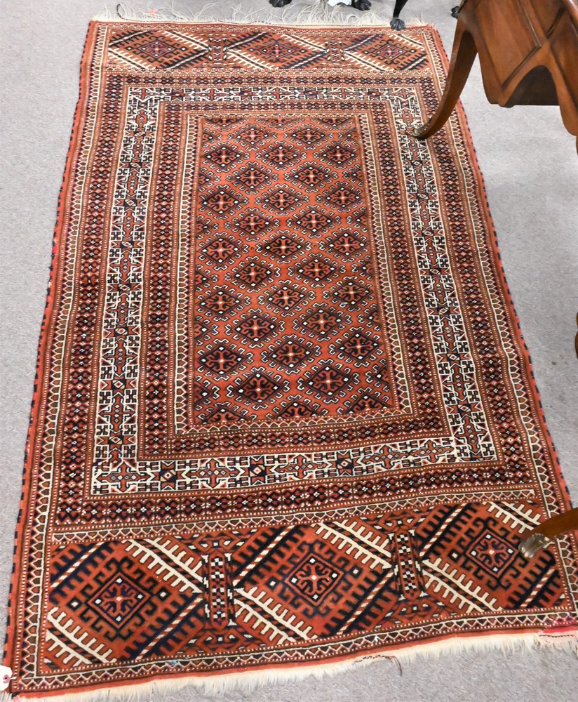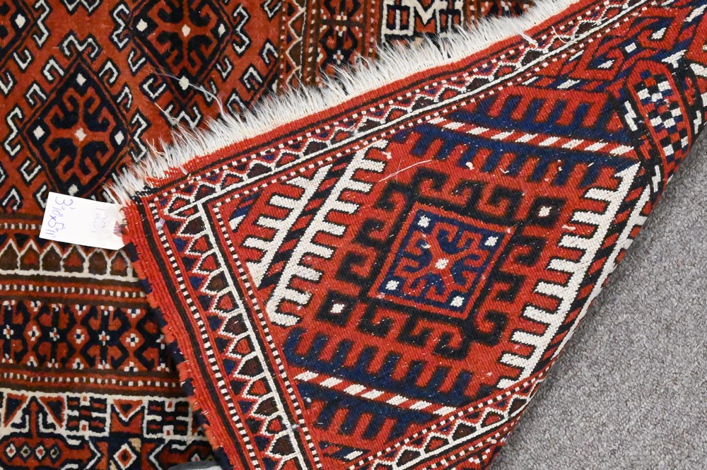 Two Oriental Rugs, to include Bokara oriental scatter rug, along with scatter rug, Bokara 3′ 10″ x 6′, scatter 3′ 6″ x 4′ 9″.