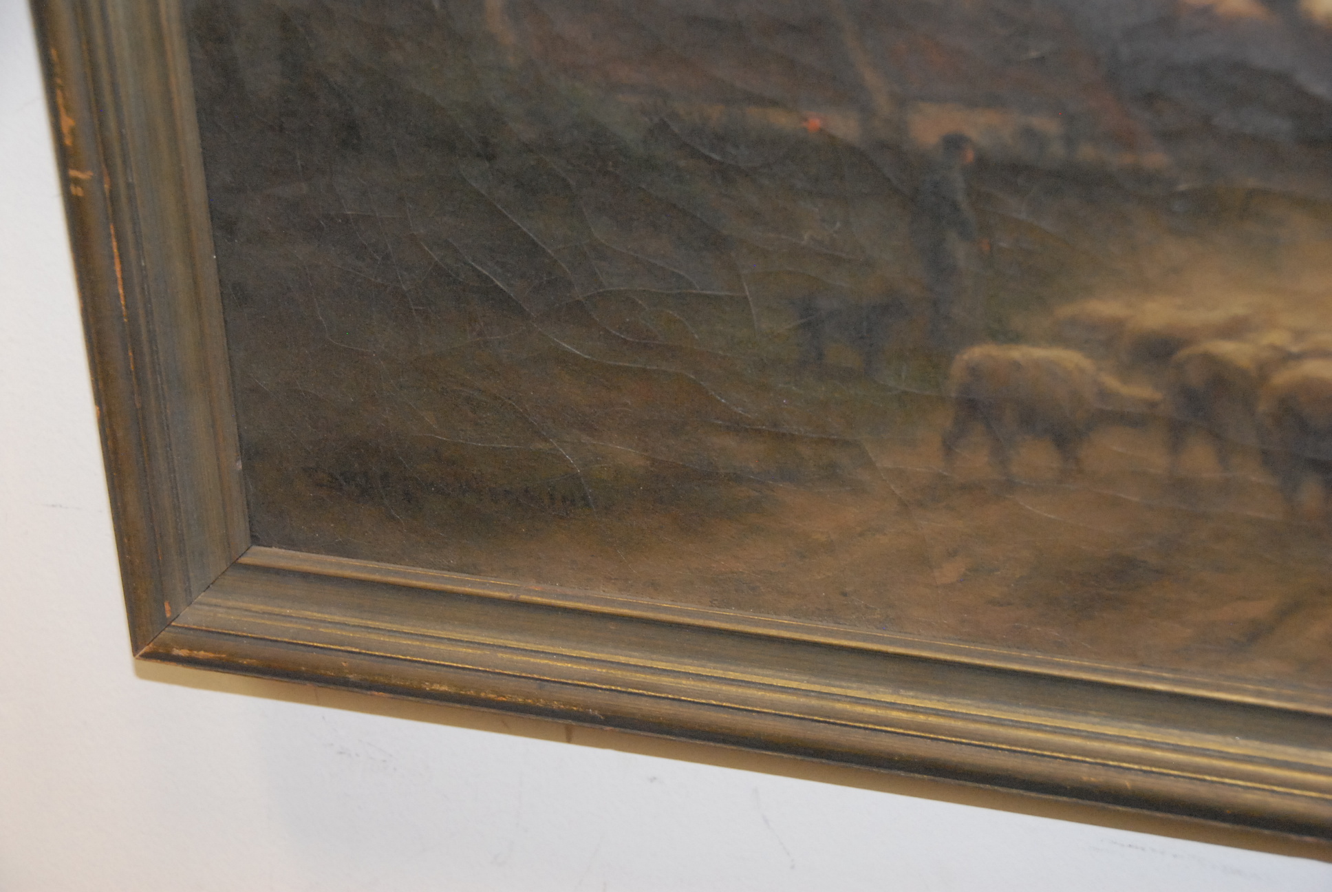 Carleton Wiggins 1848-1932 SHEPARD WITH SHEEP oil on canvas signed lower left Carleton Wiggins 12 x 16