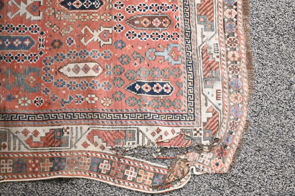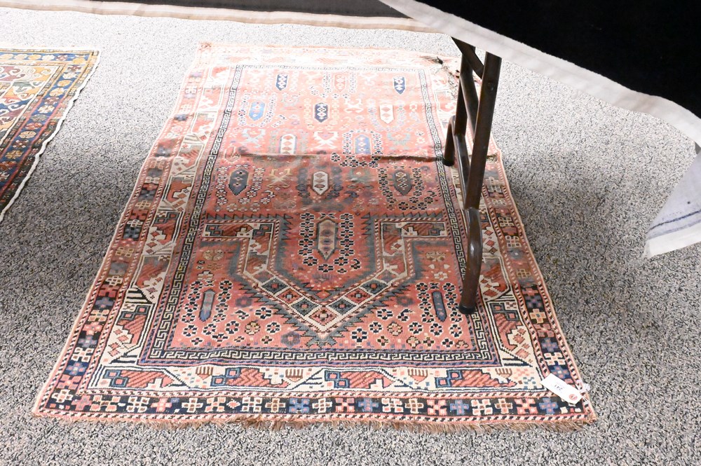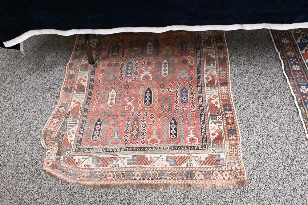 Lot 241: Caucasian Oriental Prayer Rug, 3′ x 5′, worn and cut. Provenance: Estate of Florence Yannios, Waterfront Home, Guilford, CT.