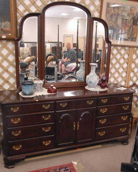 Ethan Allen triple chest and triple mirror, wd. 74in.