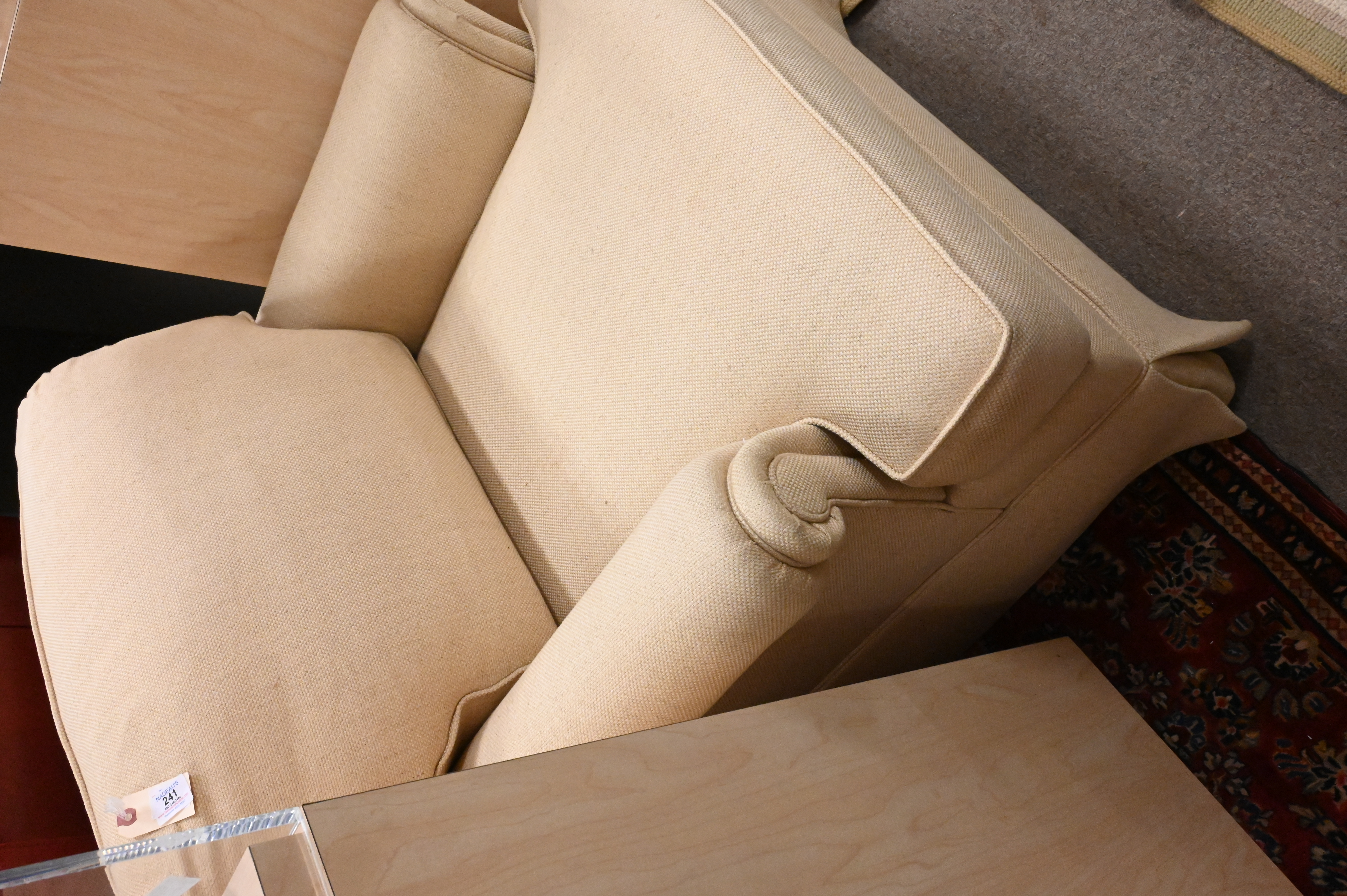 Ethan Allen Upholstered Club Chair, height 30 inches, width 33 inches