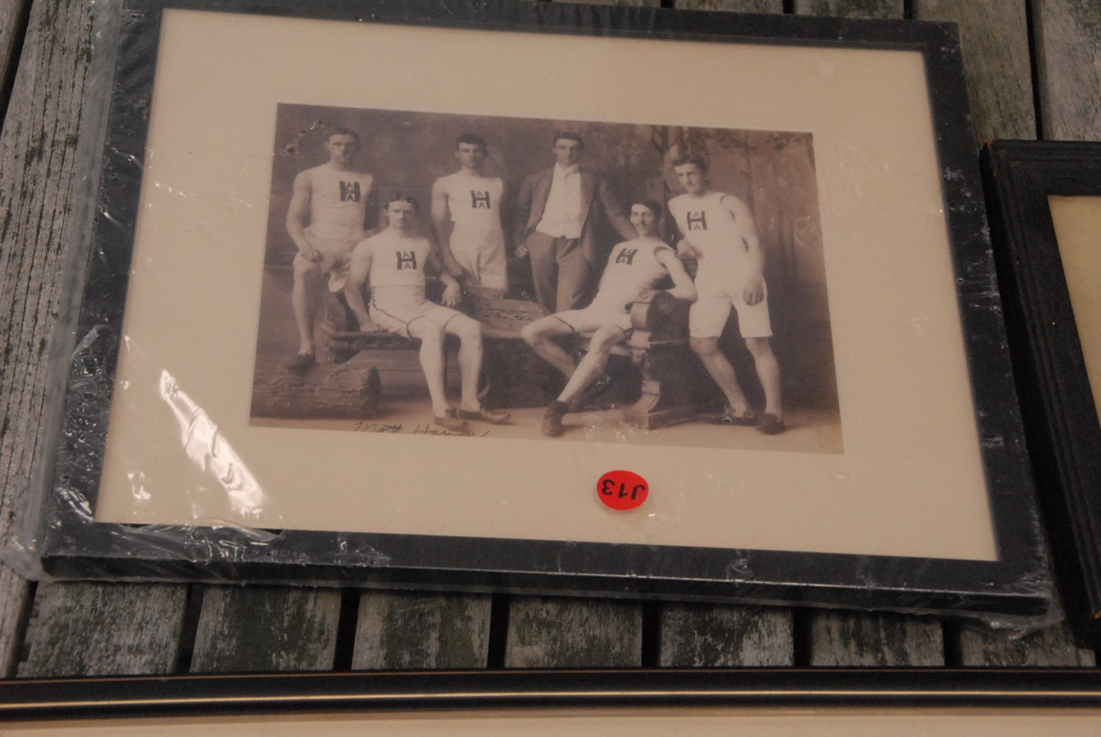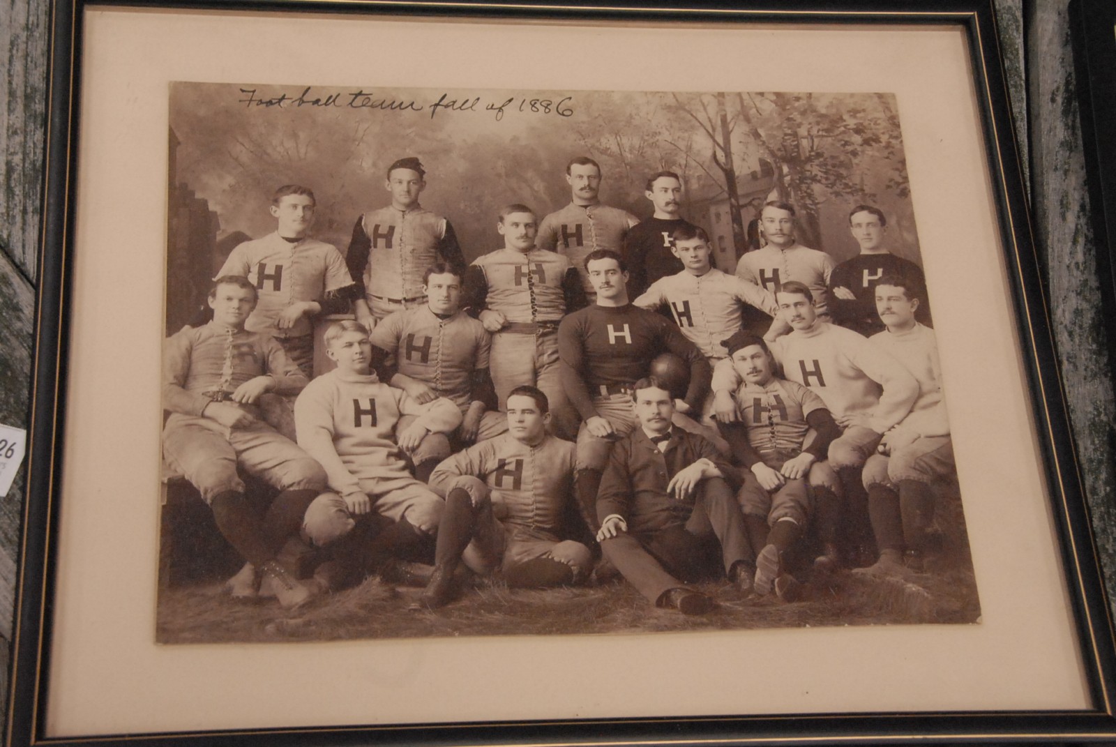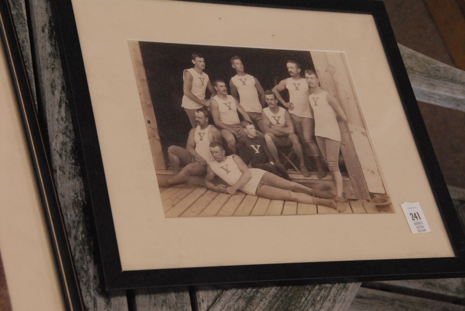 Four piece group lot to include three photographs , Harvard football team 1836, Harvard rowing team, Yale rowing team, along with New York wire from the war department, framed.