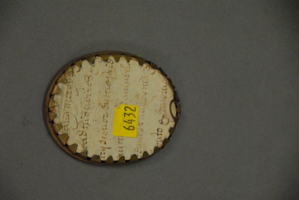 Miniature portrait of Continental soldier in red uniform with writing on reverse.