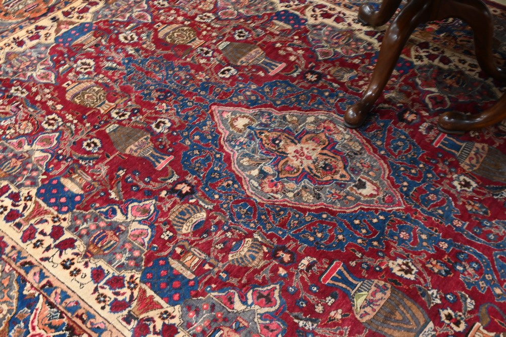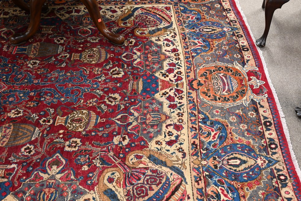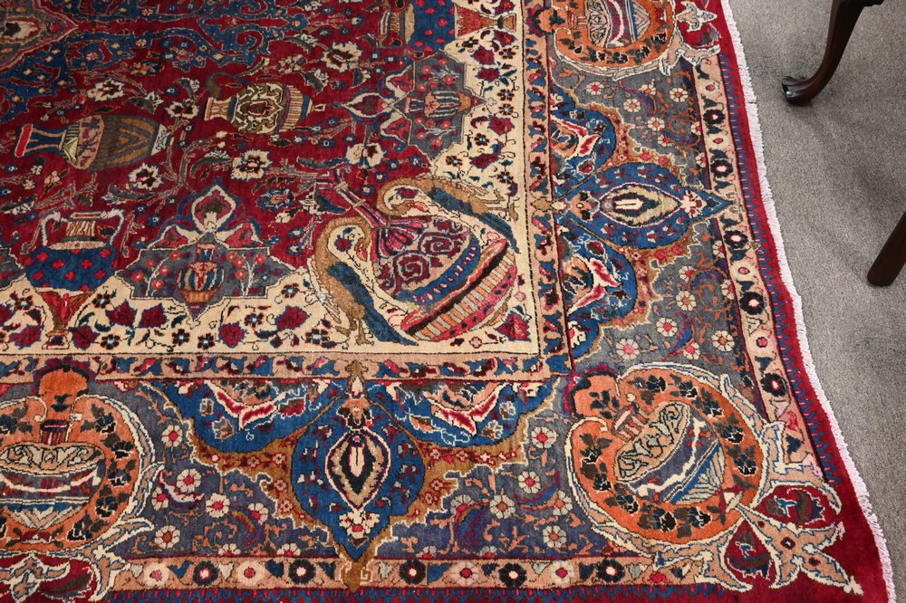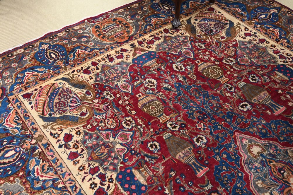 Lot 241: Oriental Carpet, having birds and urns, late 20th century, 8′ x 11′ 3″.