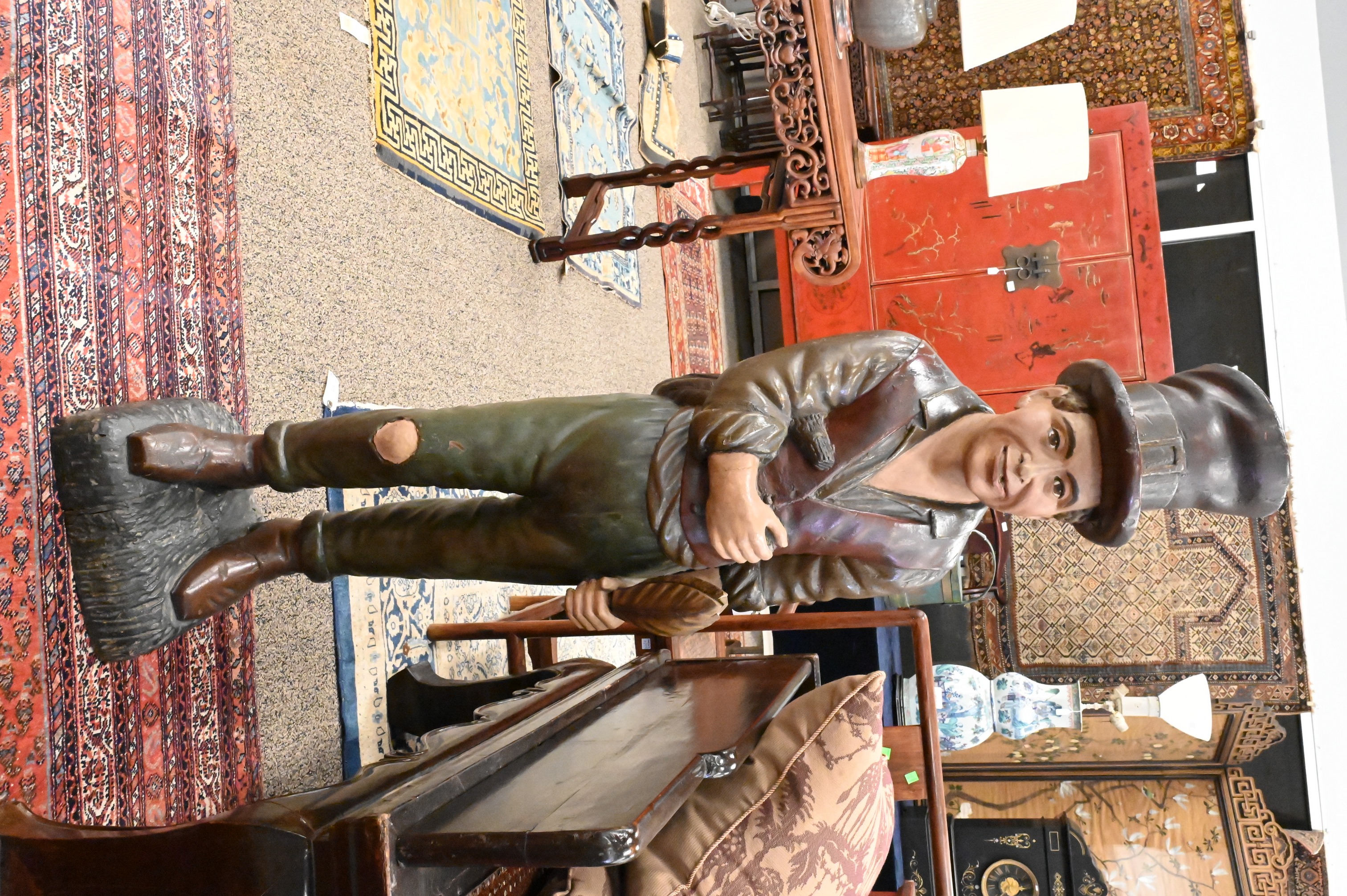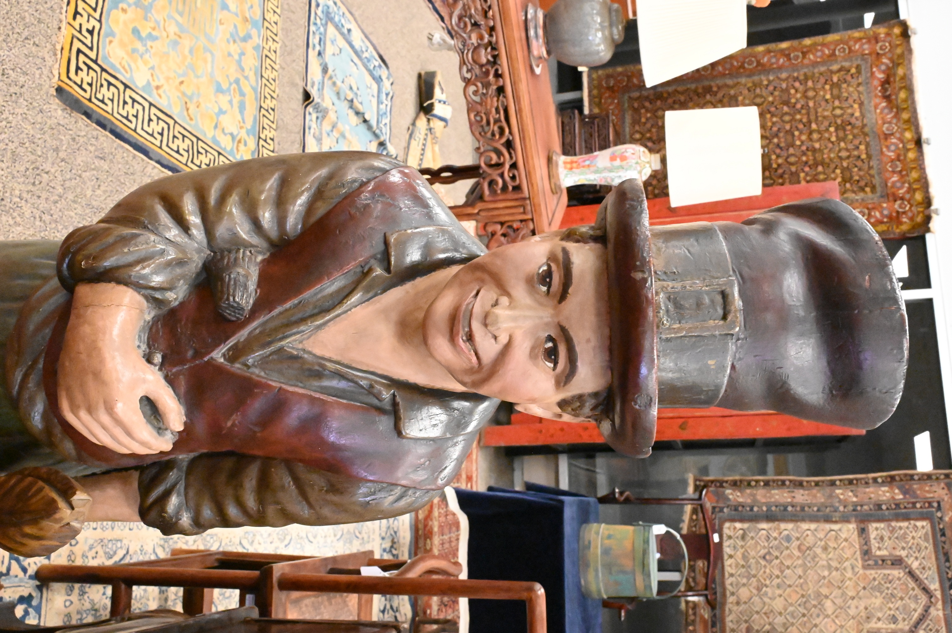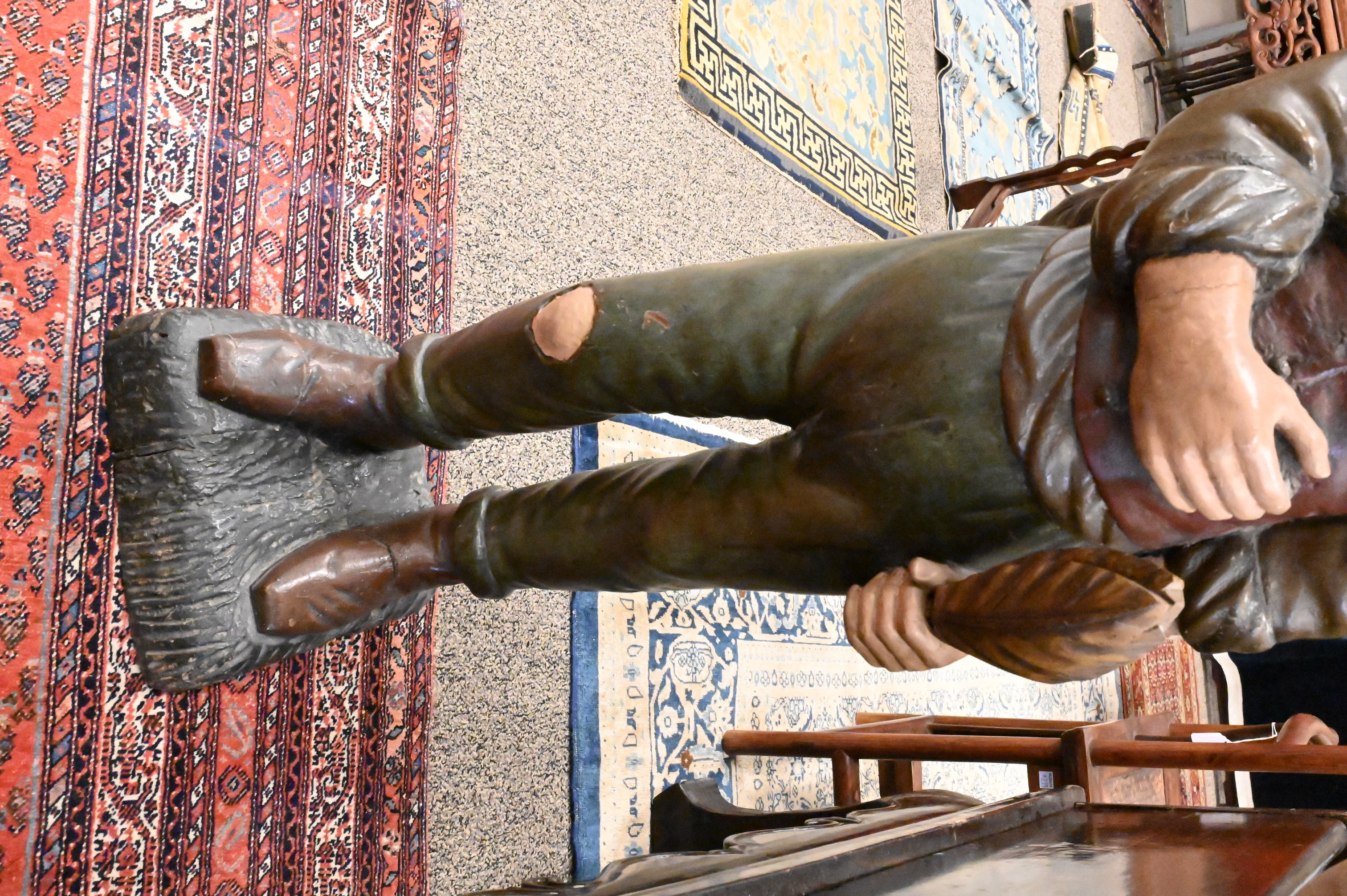 Lot 241: Polychrome Paint Decorated and Carved Wood “Hobo” Tobacconist’s Trade Figure