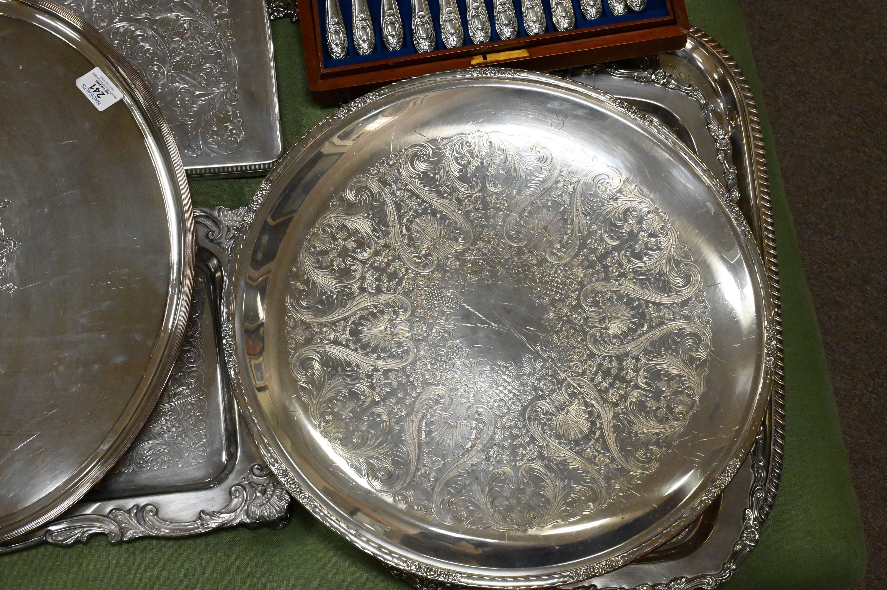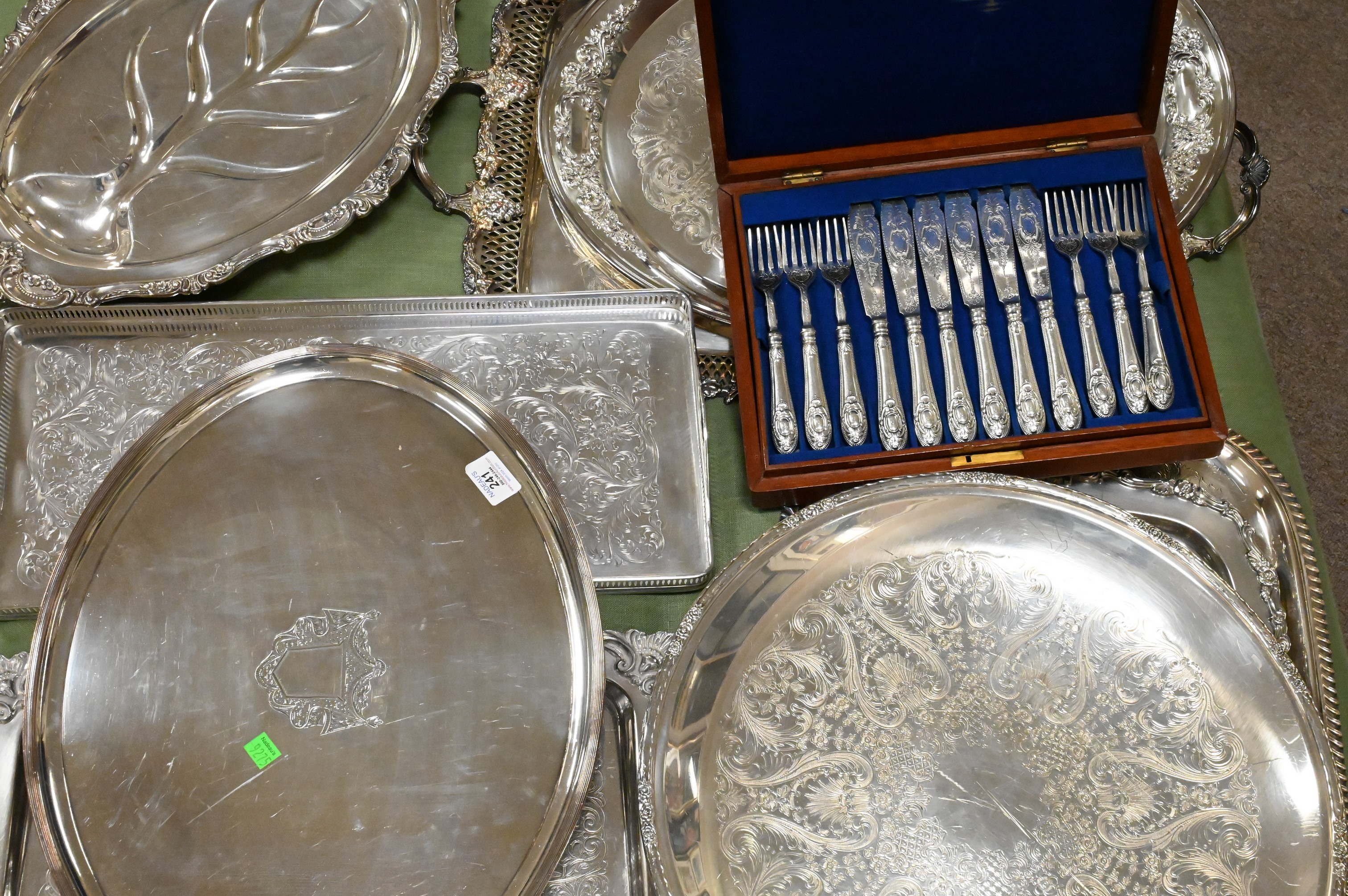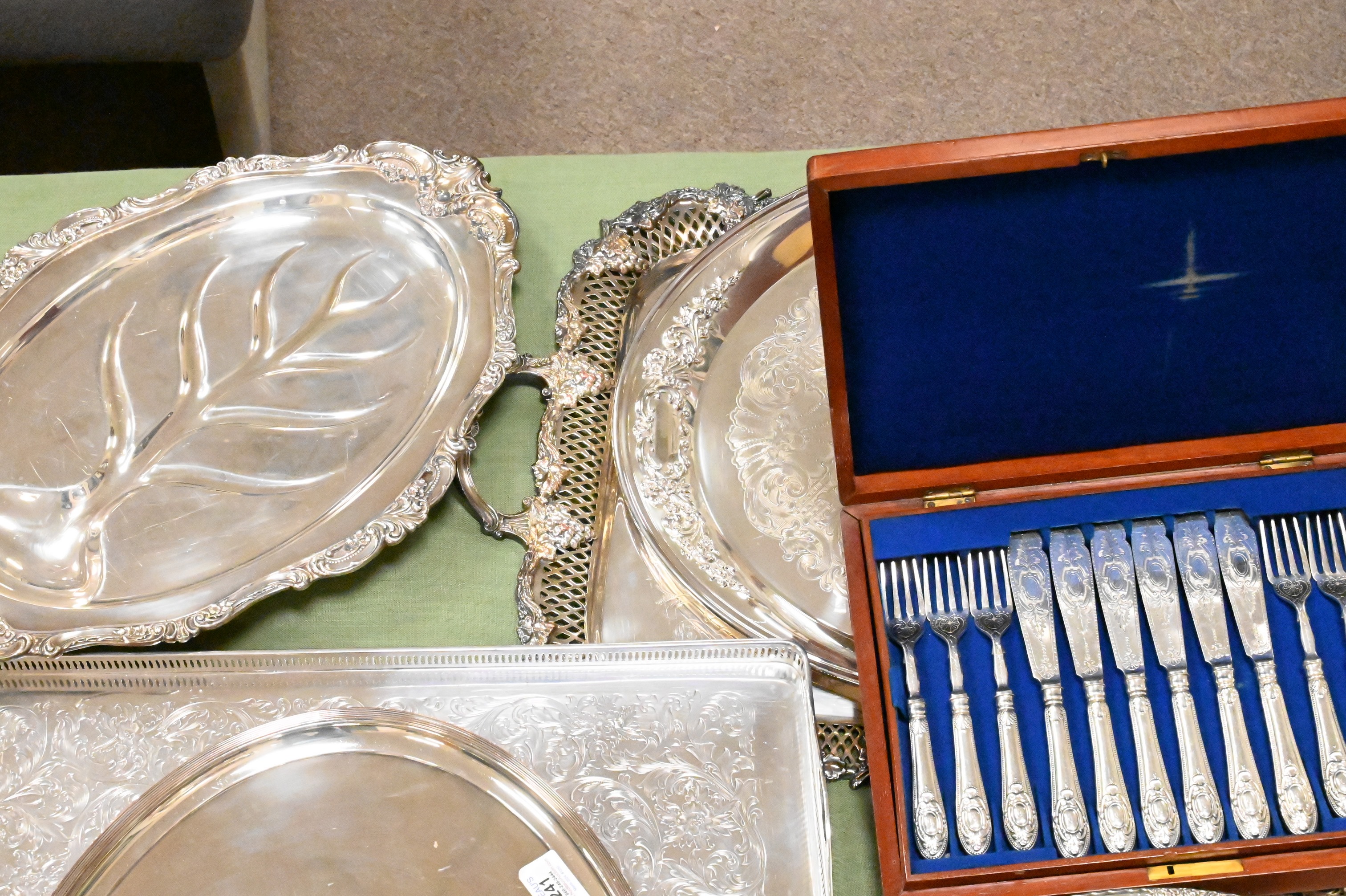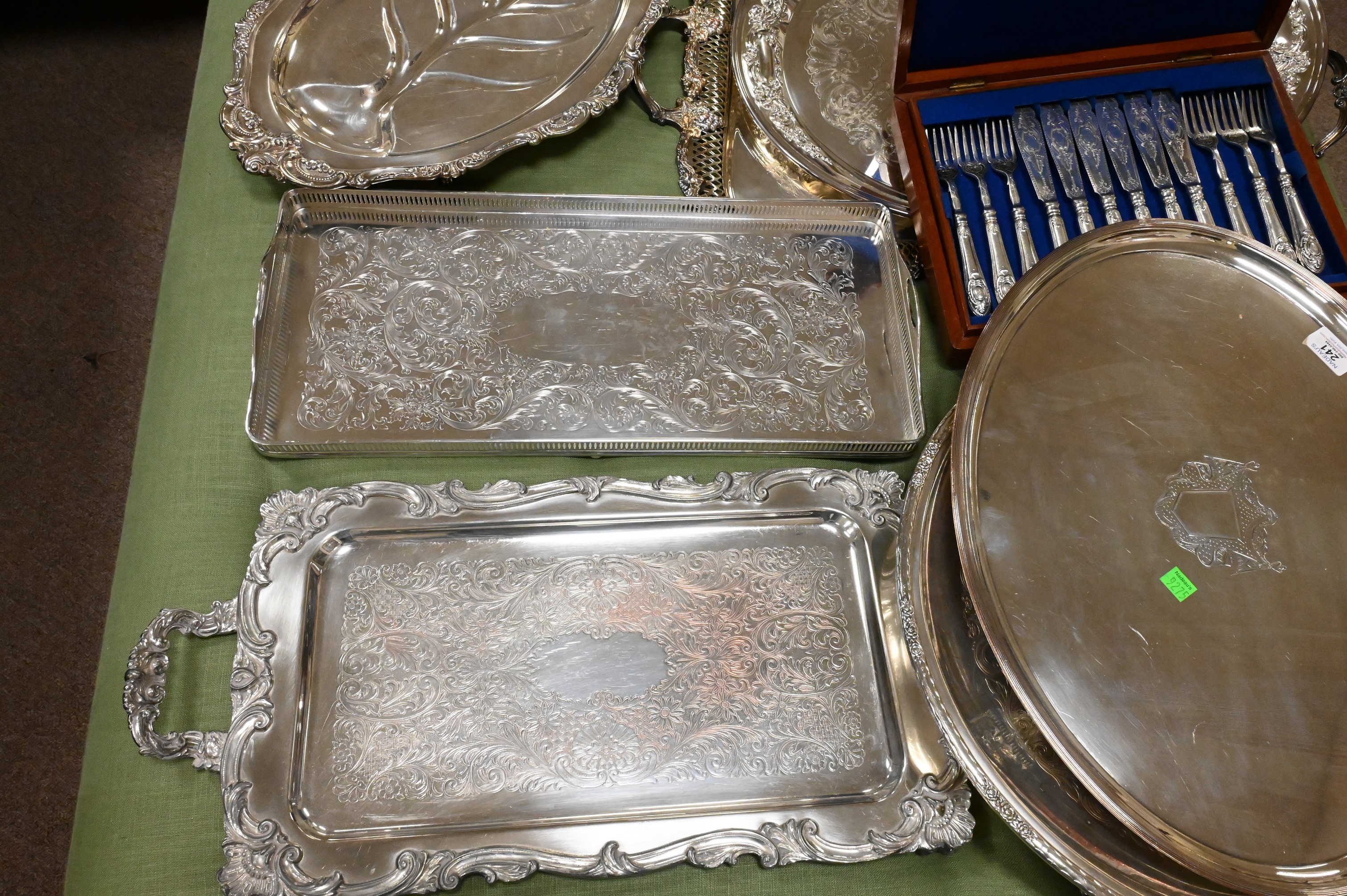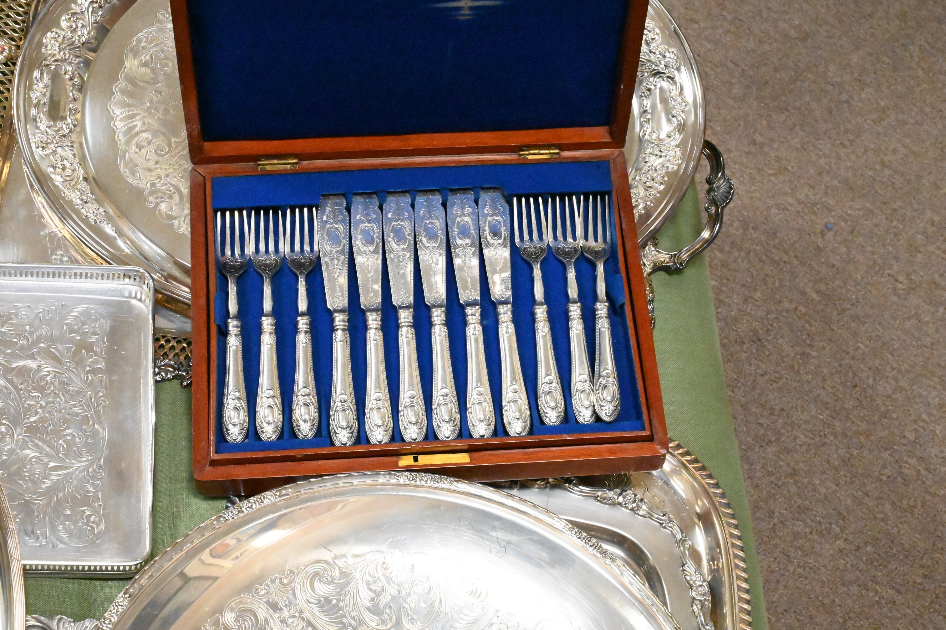 to include round trays, oval trays, rectangular trays, along with a silver plated fish set in a fitted box