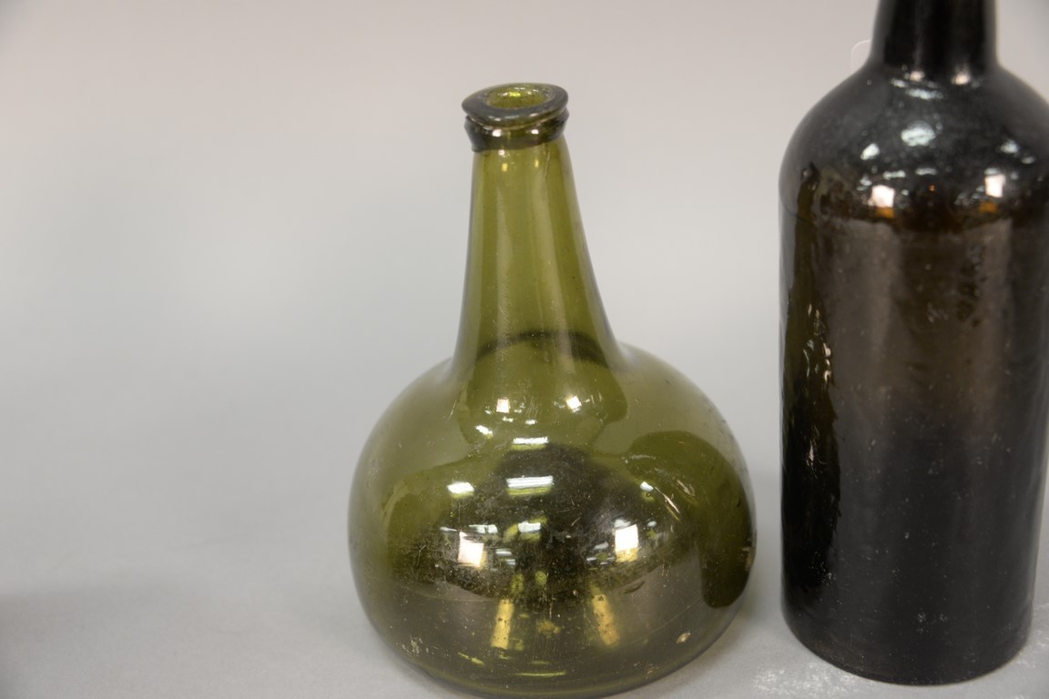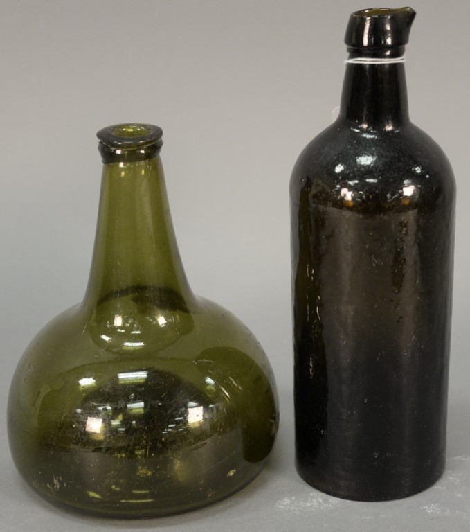Lot 241: Two early bottles, one with spout. ht. 7 1/2in. and 9 1/2in. Provenance: Estate of Arthur C. Pinto, MD