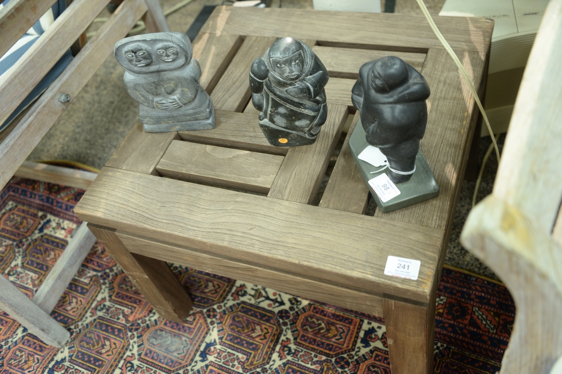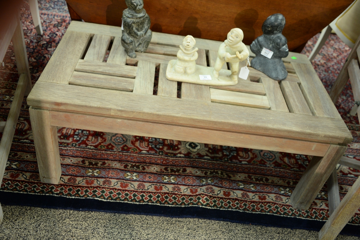 Two Lister teak tables, one coffee and one end table. coffee: 20 1/2 x 37 1/2, end: 20 x 20