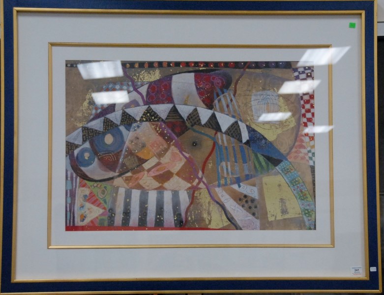 Lot 241: Two piece lot to include blue and gold framed print, 21 x 31 sight size and Anthony Sir Anthony Caro 1924 three dimensional…