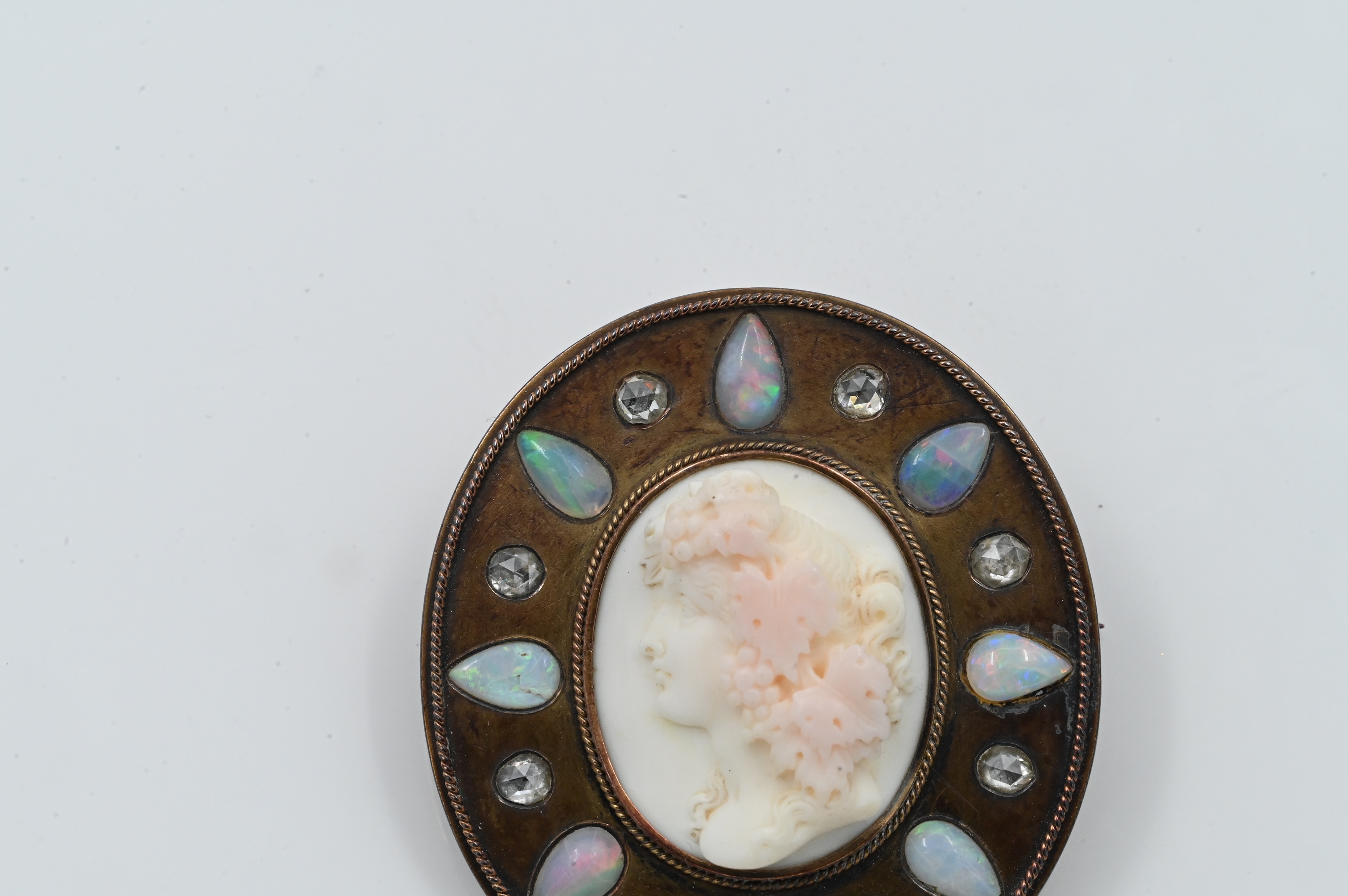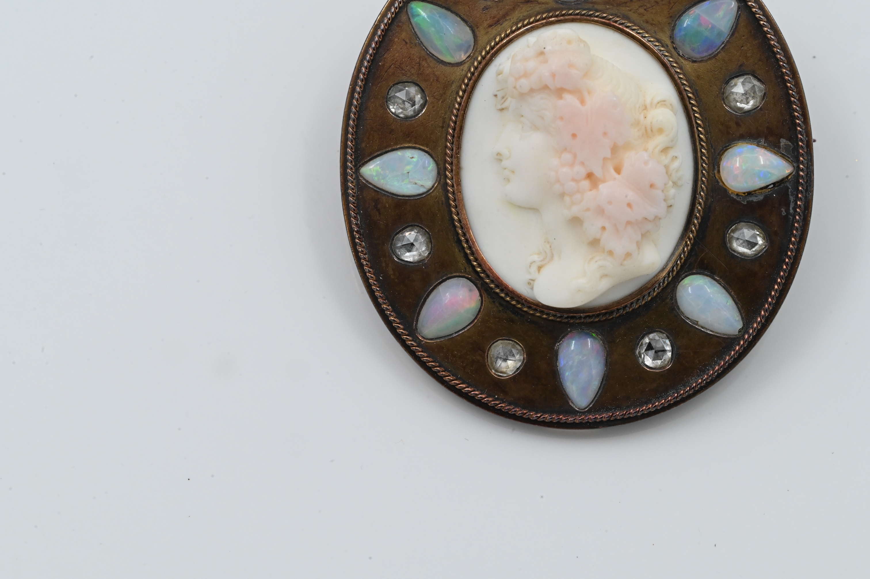 plus frame mounted with opals and white sapphires