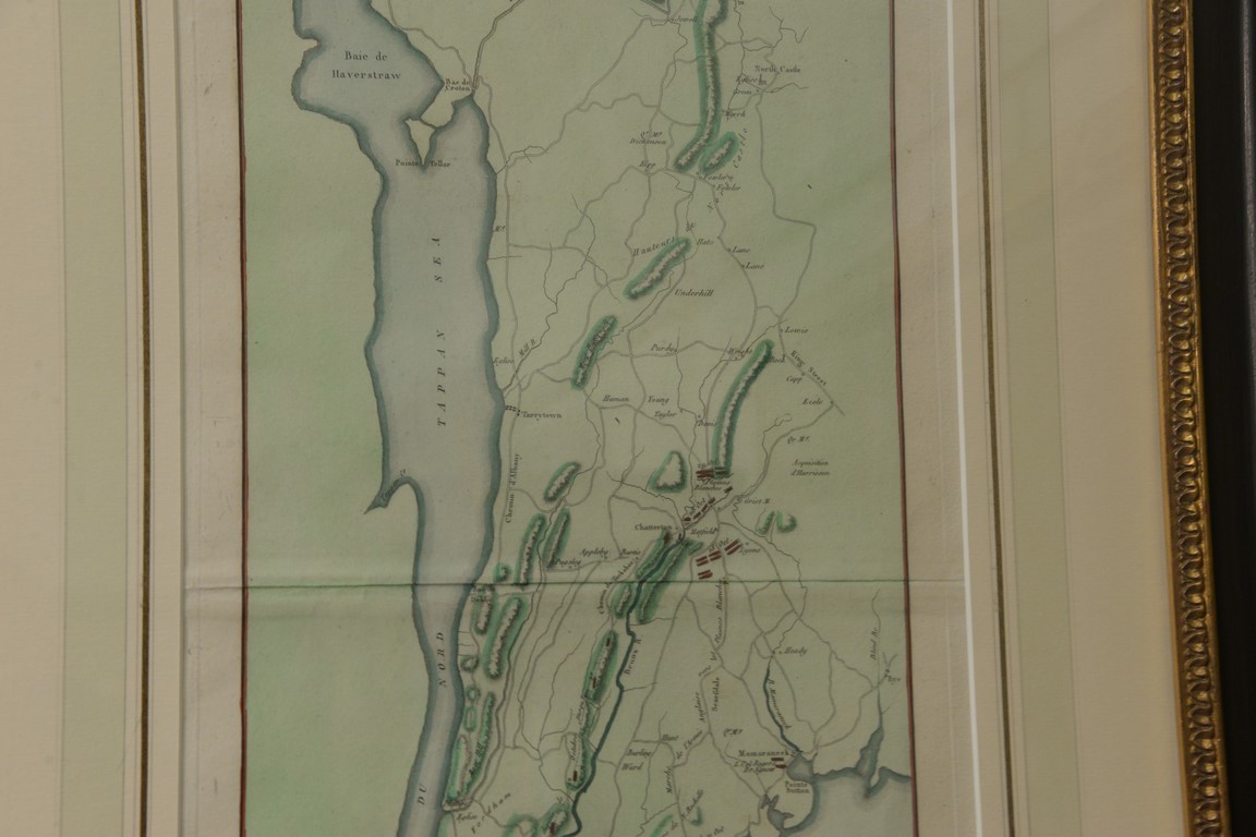 Lot 241: William Faden, Claude Joseph Sauthier hand colored engraved map Pays Situe entre Frogs pint et Croton River of Position Des Ar…