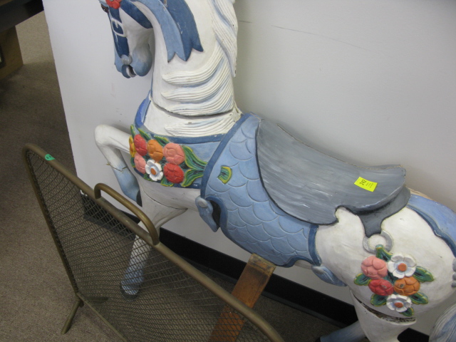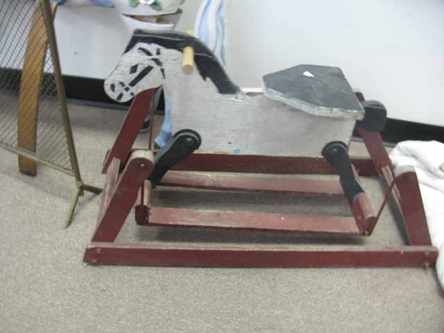 Carousel style horse along with small rocking horse.