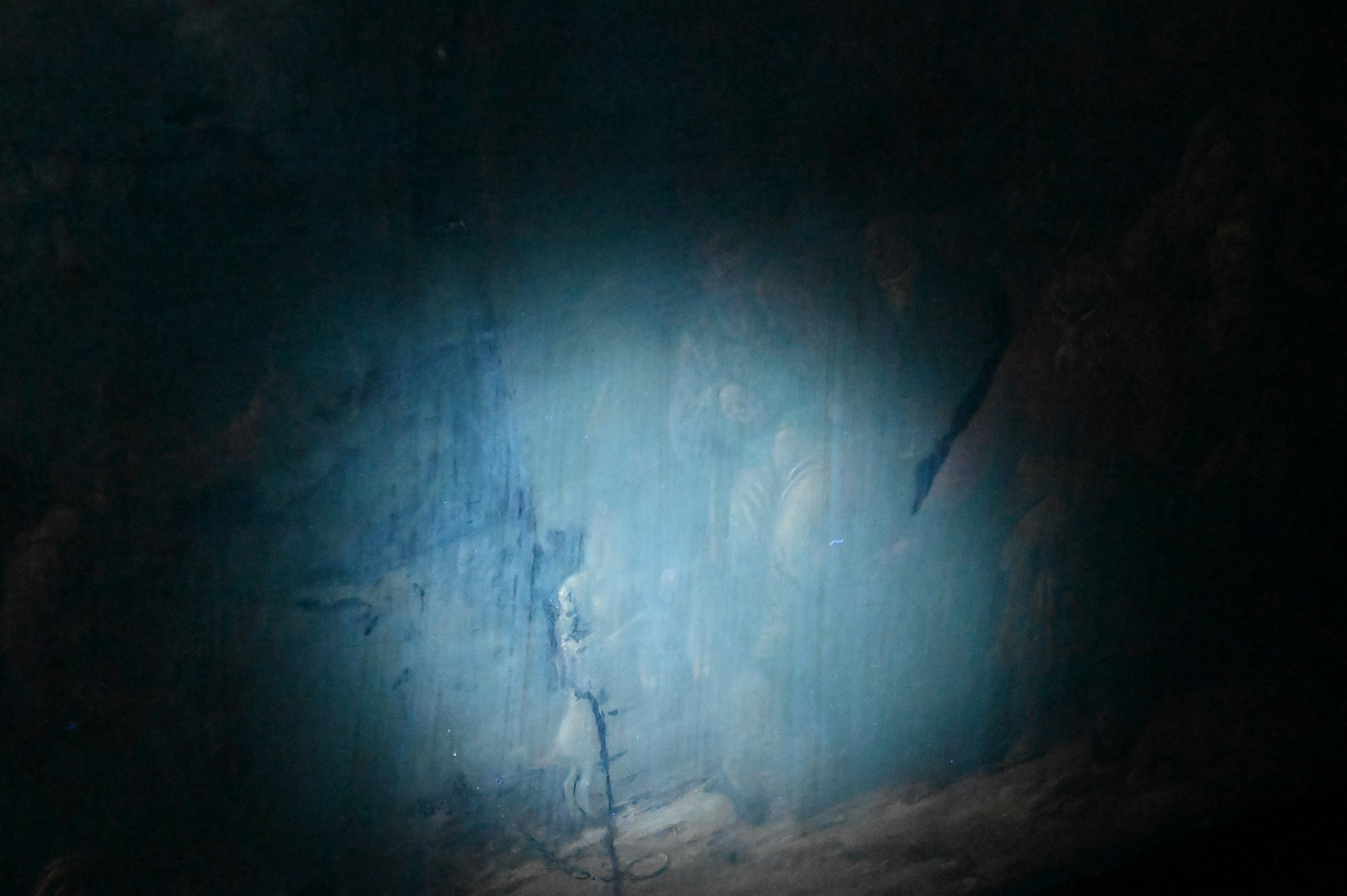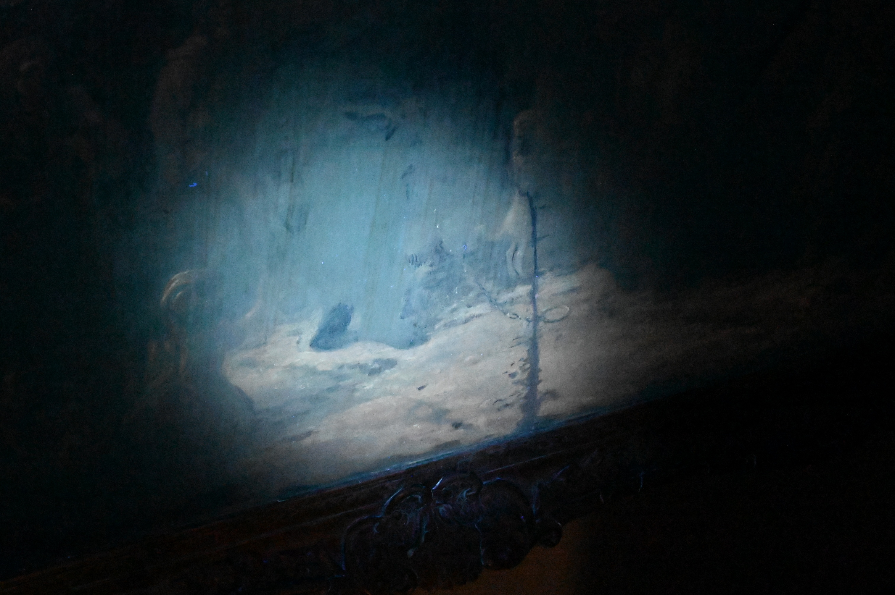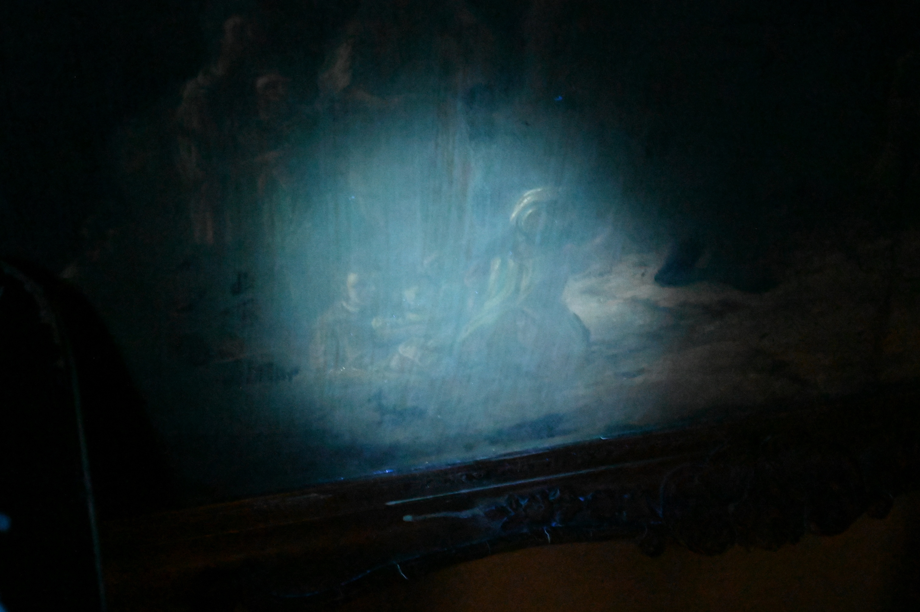 Black light: heavy varnish, heavy inpainting and several repairs throughout, see photos