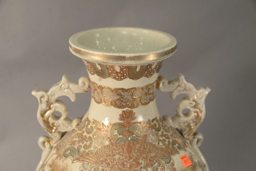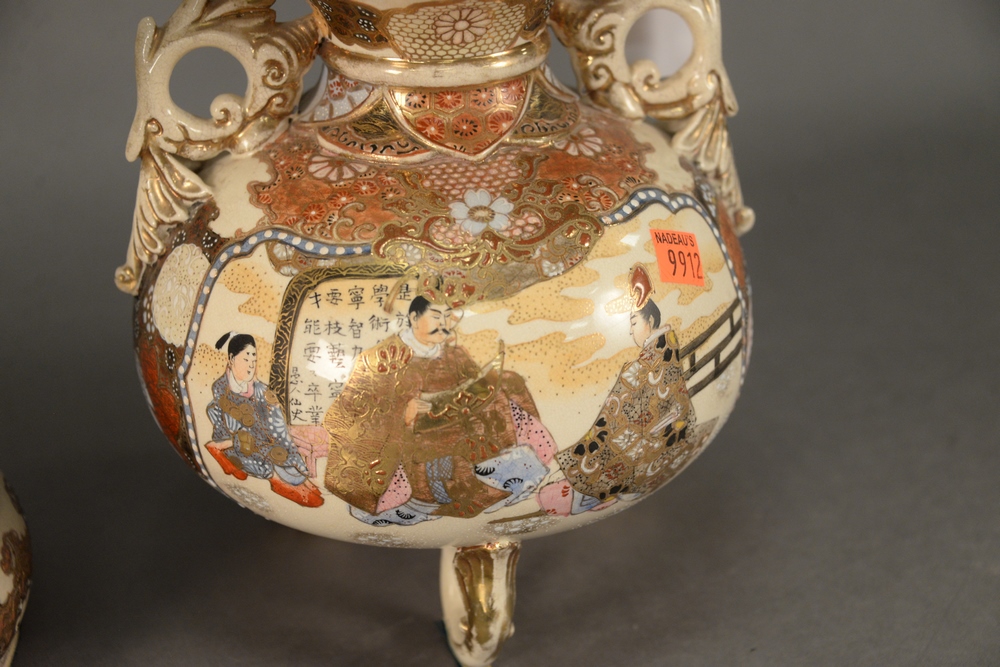 Lot 242: Five Piece Lot, to include a Satsuma vase on stand; Satsuma covered urn; small Japanese cabinet vase; pewter plate with jewels, alon…