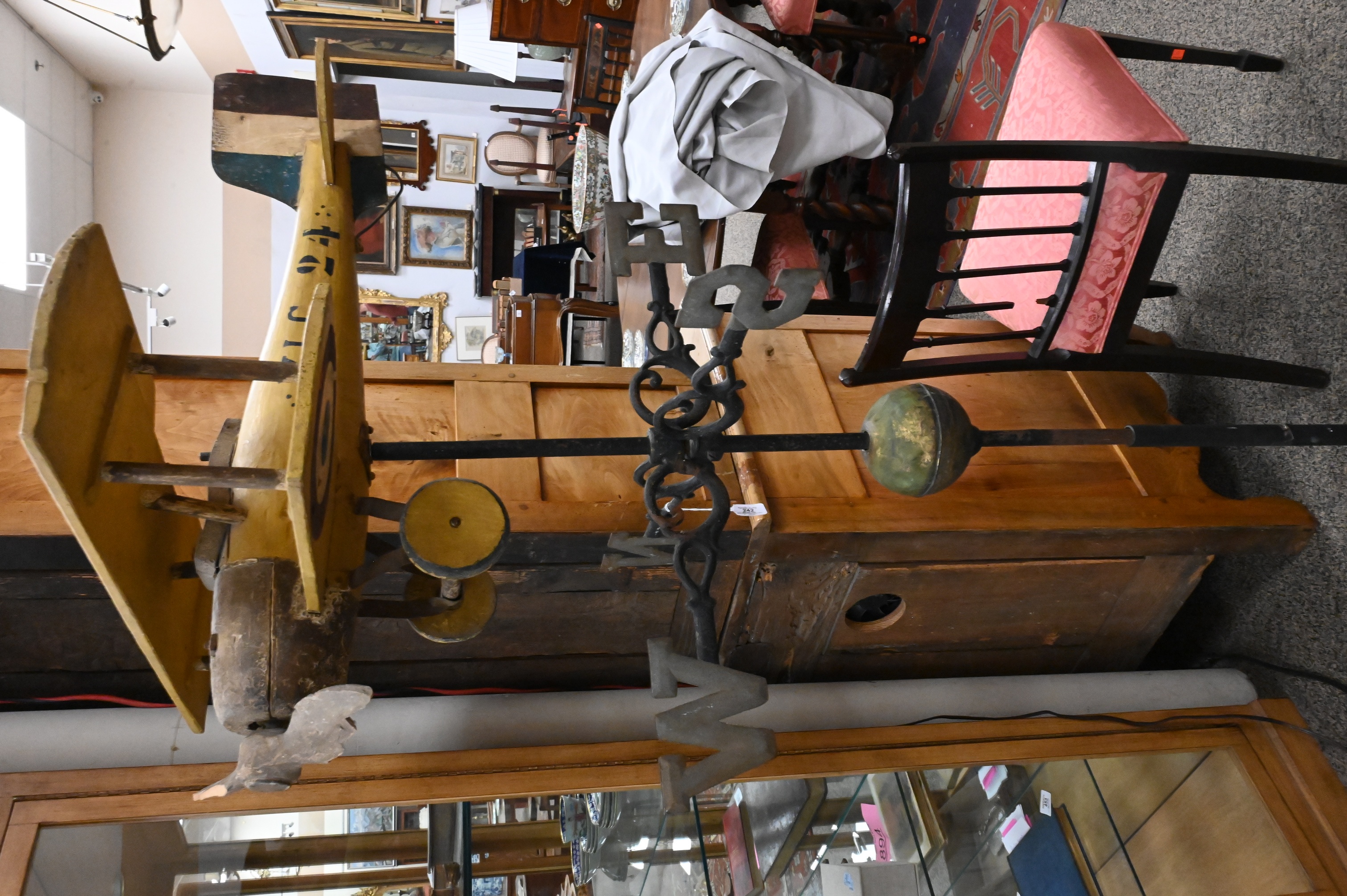 Lot 242: Folk Art Weathervane of Painted Wooden Bi Plane