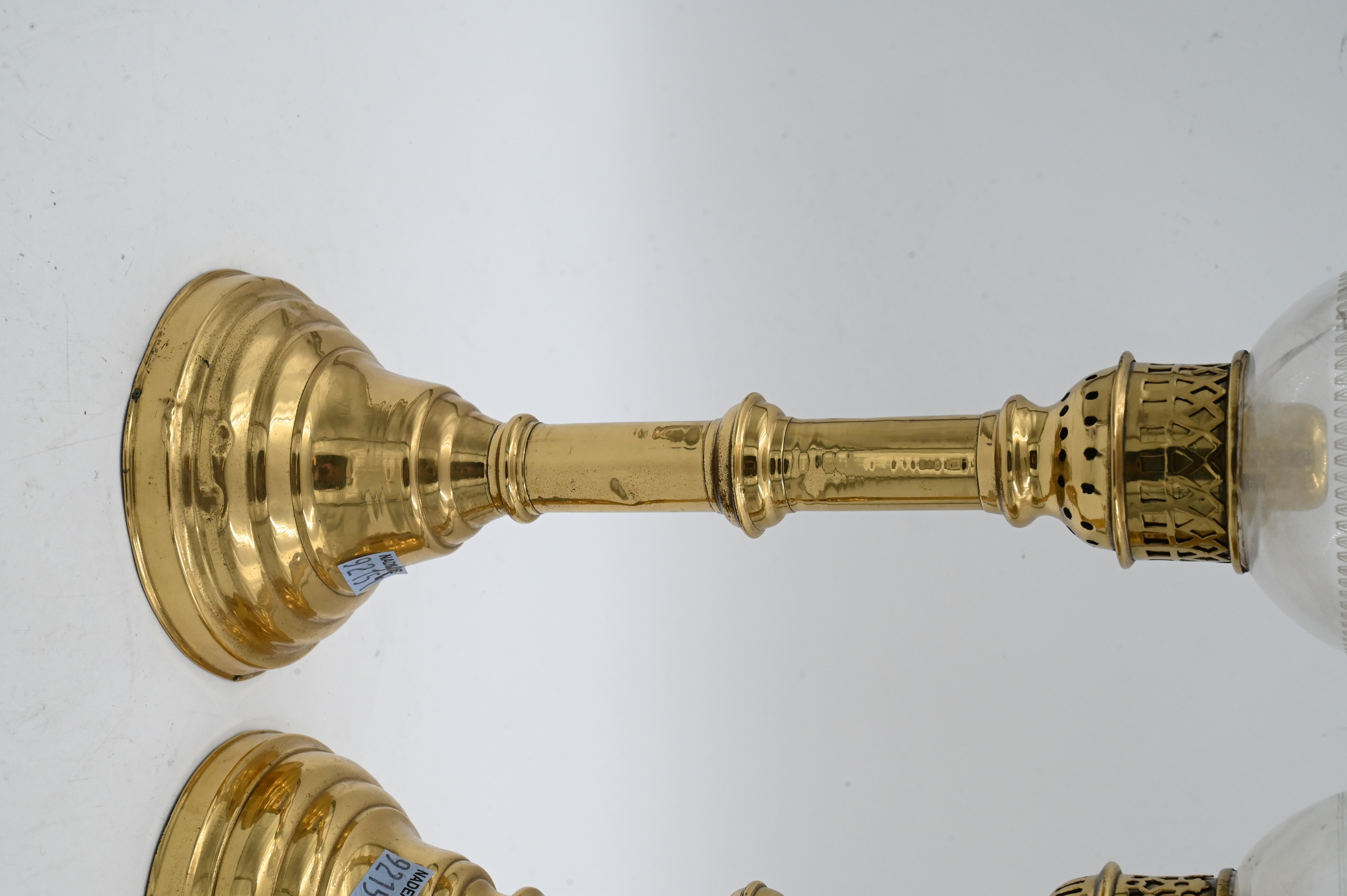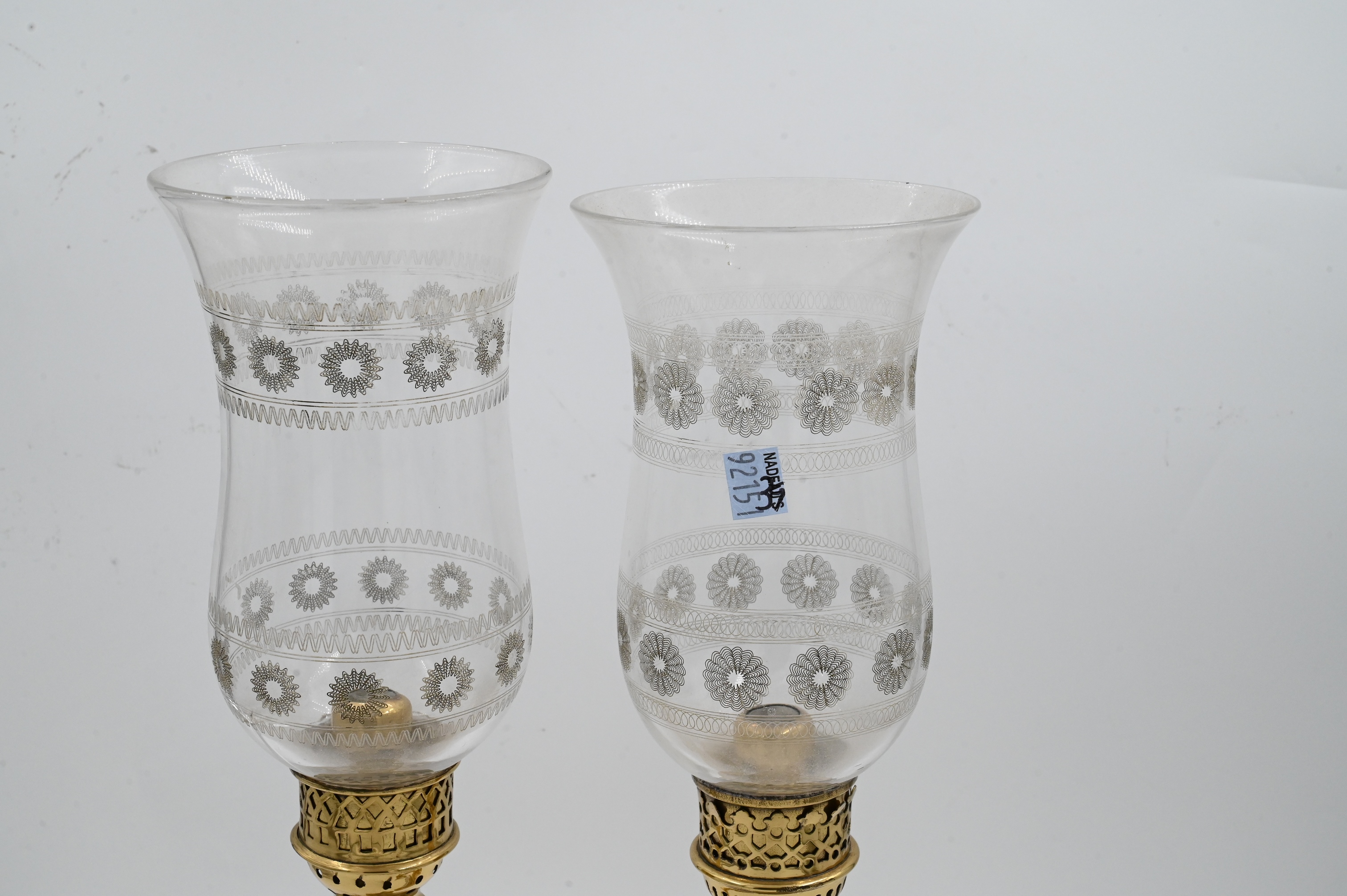 with etched glass hurricane shades signed in cyrillic “Garden in Moscow”