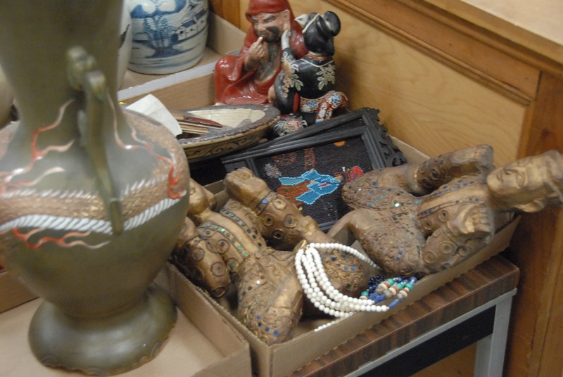 Lot 242: Table lot to include Japanese and Chinese vases, dishes, dolls, jars, teapots, etc.
