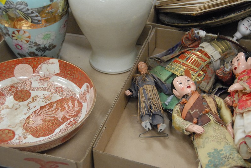 Table lot to include Japanese and Chinese vases, dishes, dolls, jars, teapots, etc.