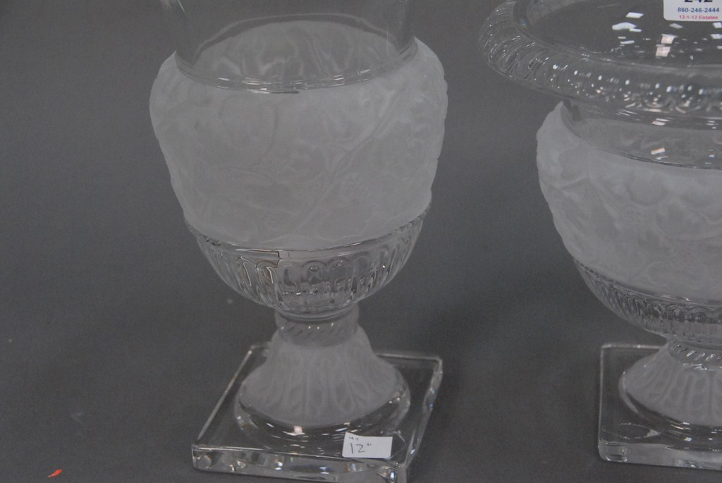 Two Shannon crystal compotes with frosted sides.