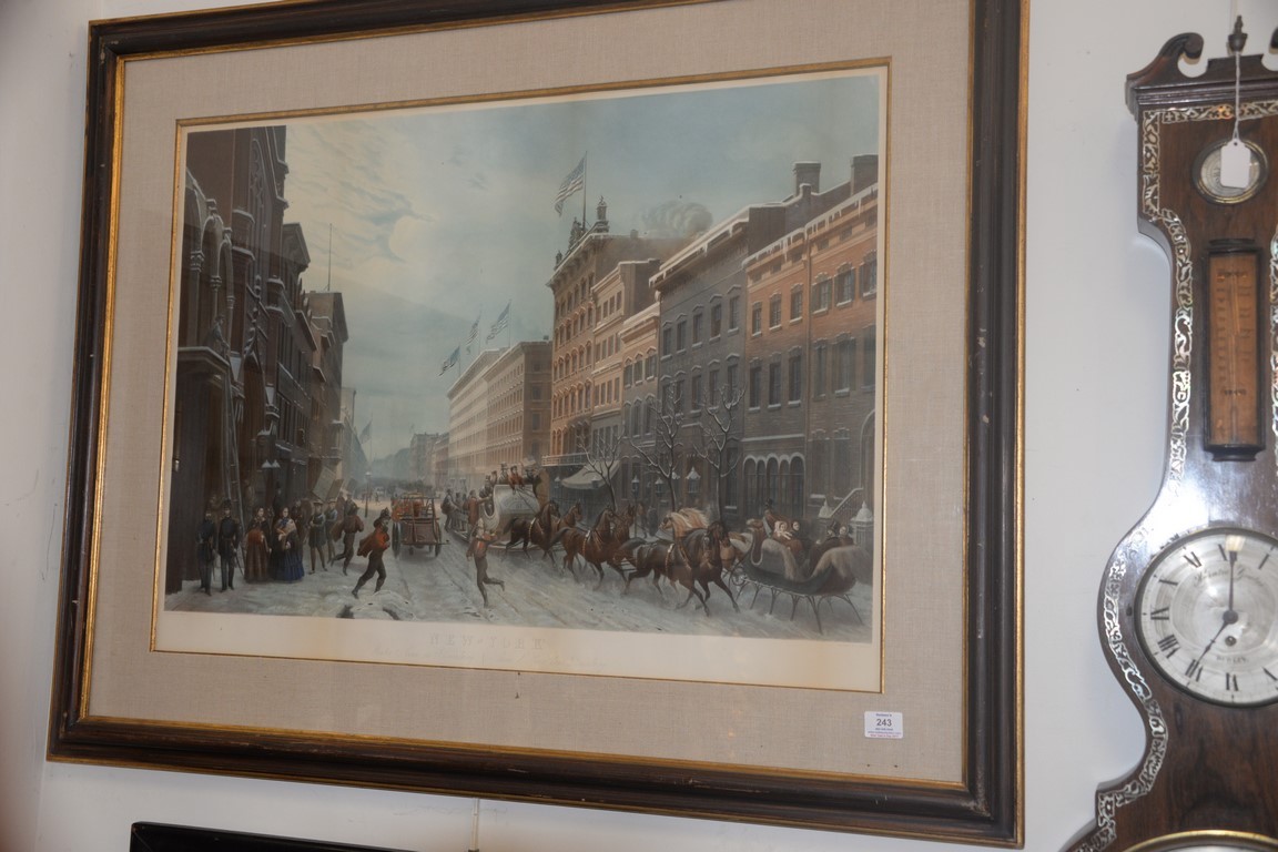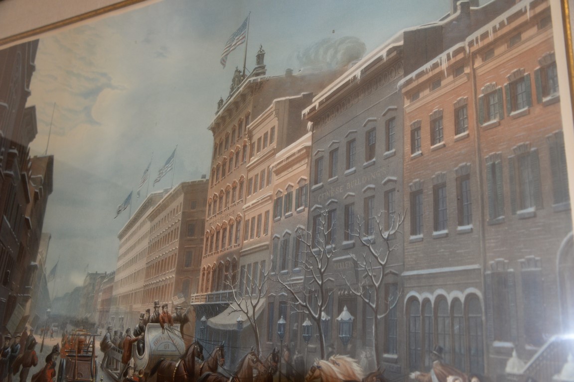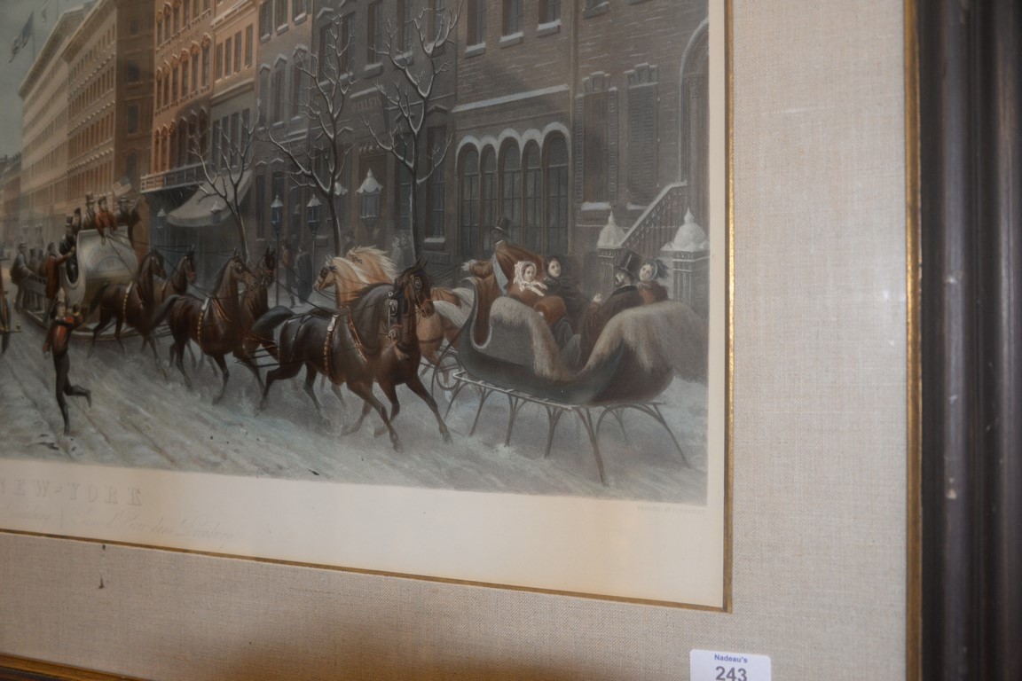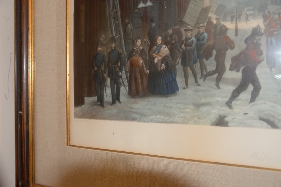Lot 243: After Hippolyte-Victor Valentin Sebron 1801-1879 etching with aquatint by P. Girardet New York Winter Scene in Broadway