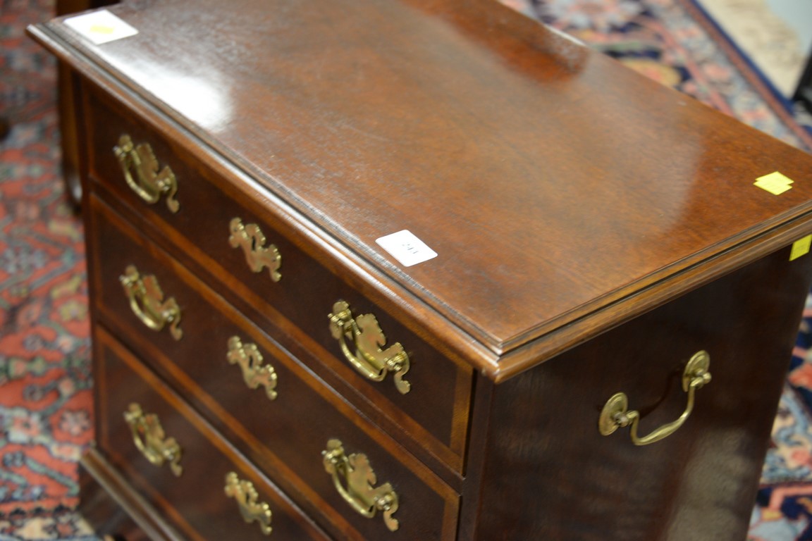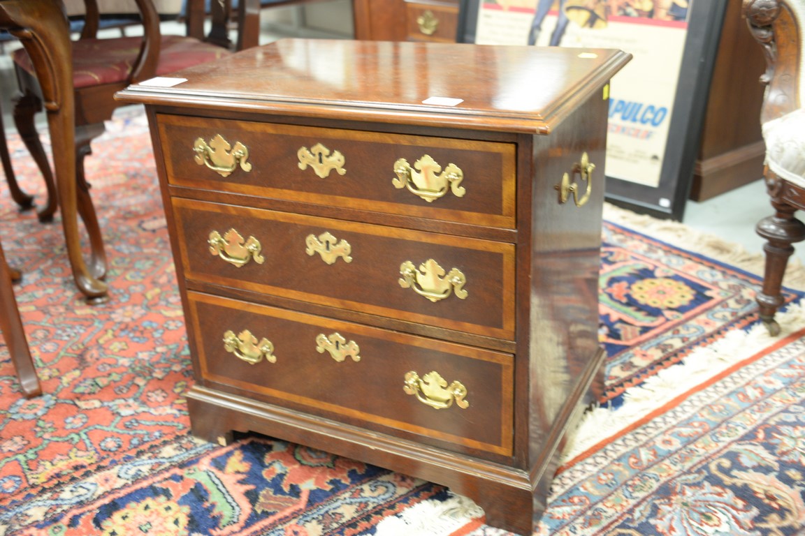 Baker diminutive mahogany three drawer chest signed Baker. ht. 22 in. wd. 23 in.