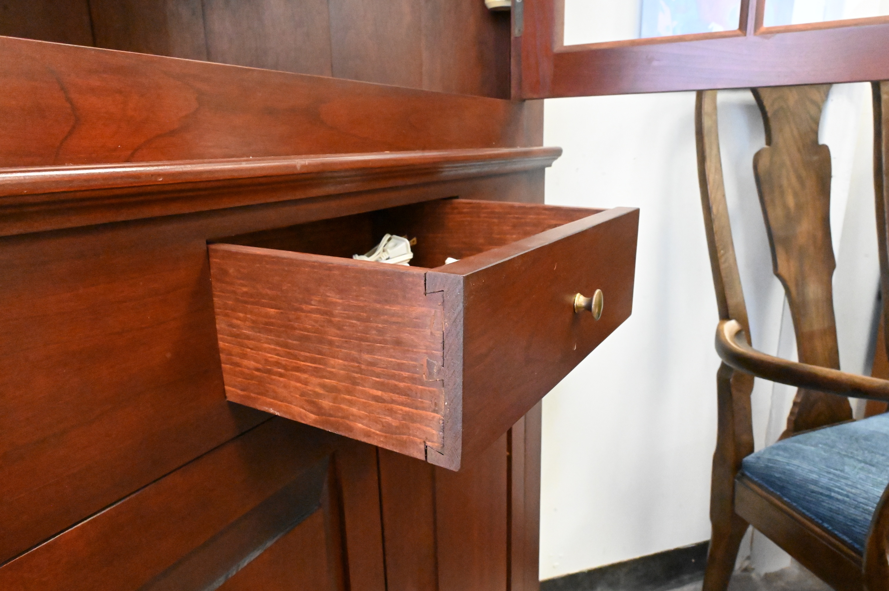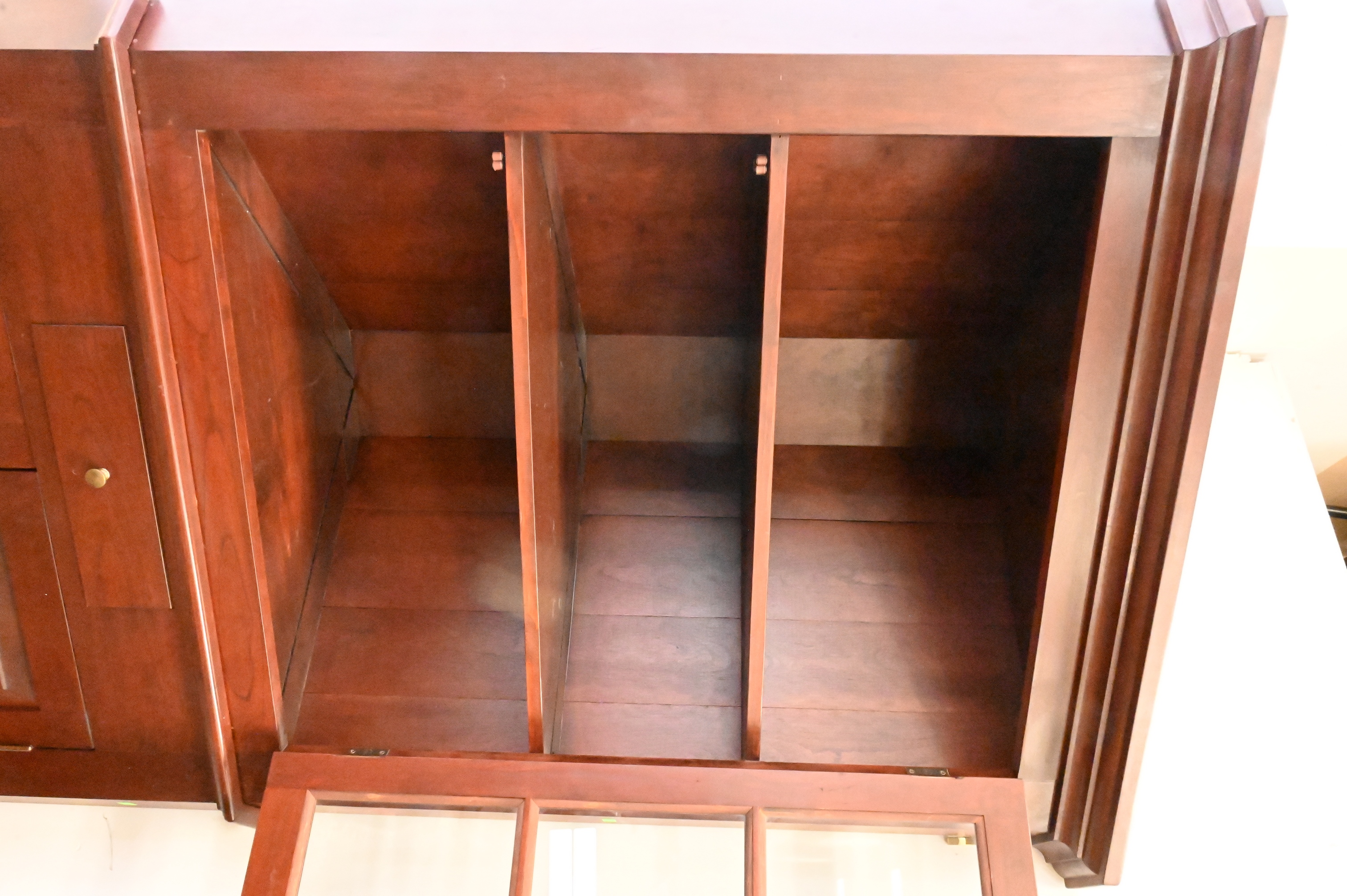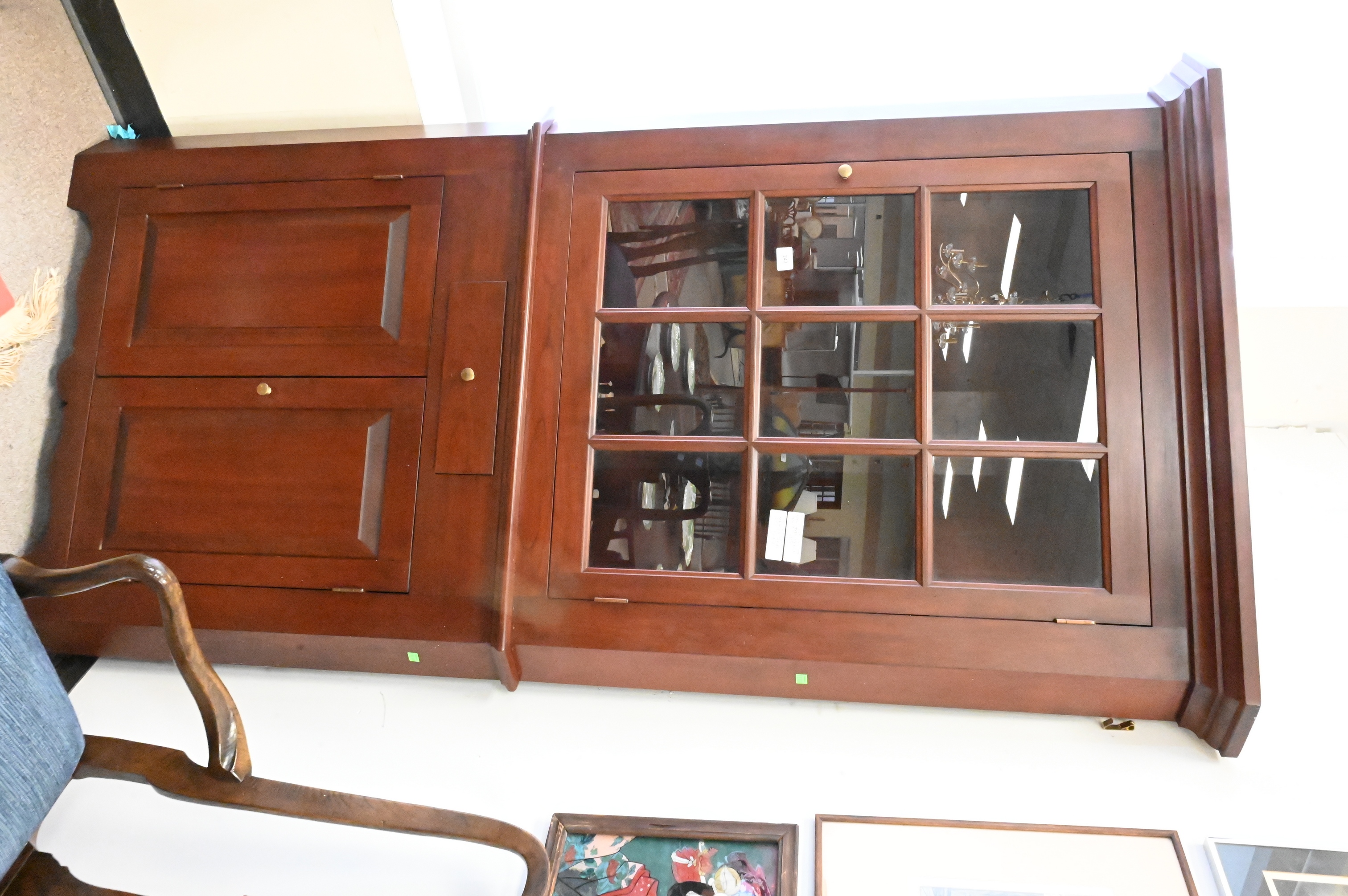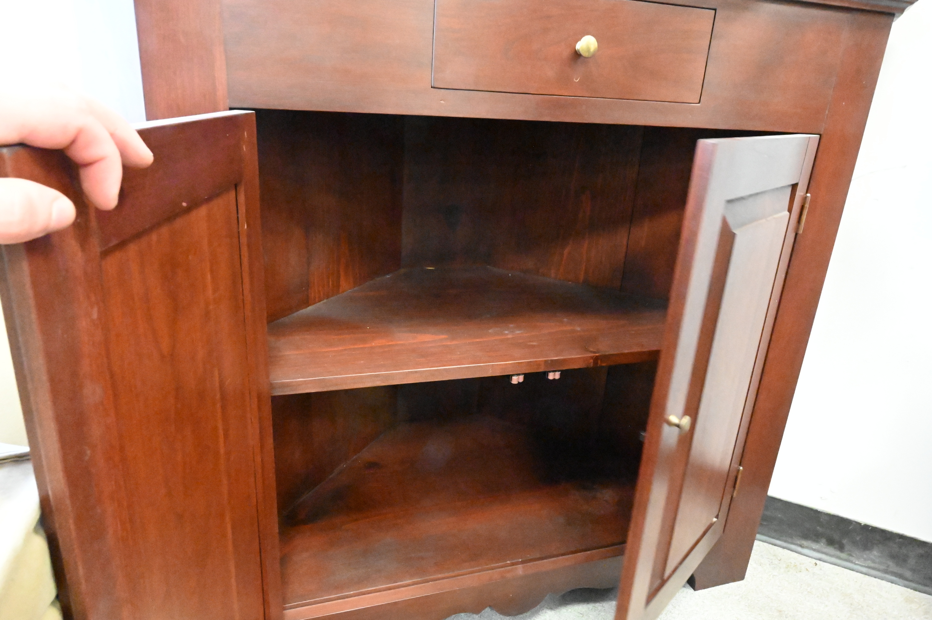 Lot 243: Benchmade Dark Cherry Two Part Corner Cabinet