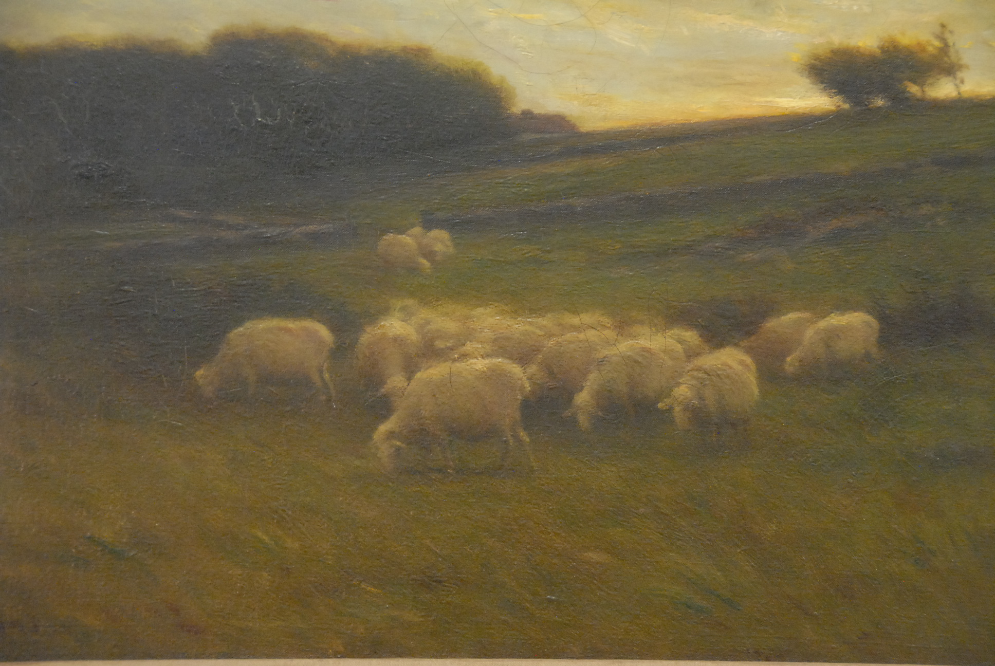 Carleton Wiggins 1848-1932 THE EVENING HOURS oil on canvas signed lower left Carleton Wiggins titled and signed on reverse Central Art Gallery label on back 25 x 30