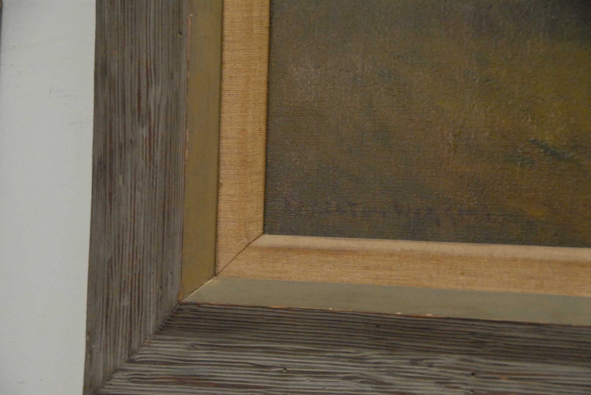 Lot 243: Carleton Wiggins 1848-1932 THE EVENING HOURS oil on canvas signed lower left Carleton Wiggins titled and signed on reverse Central Art Gallery label on back 25 x 30